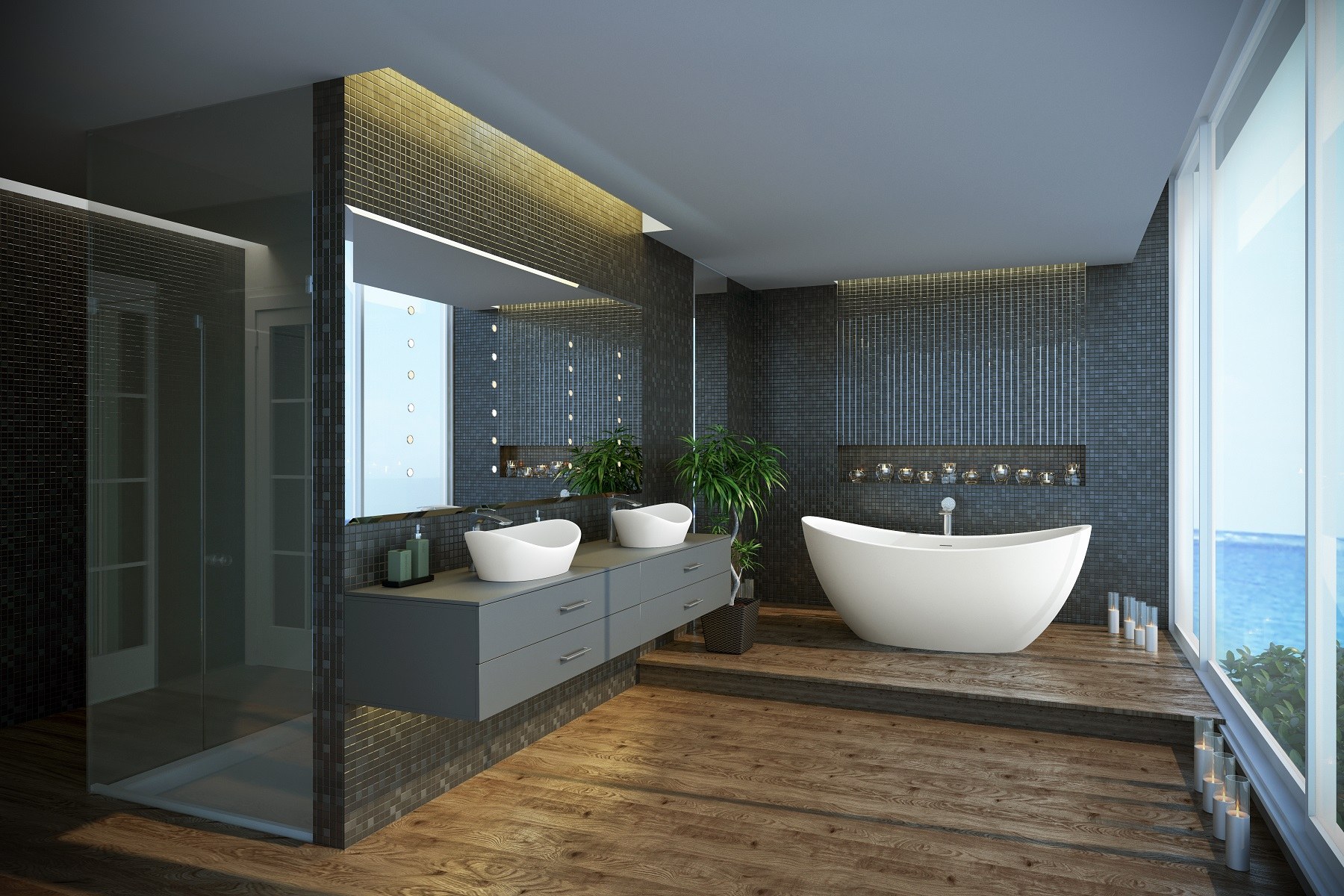 Отдельностоящая ванна на подиуме
