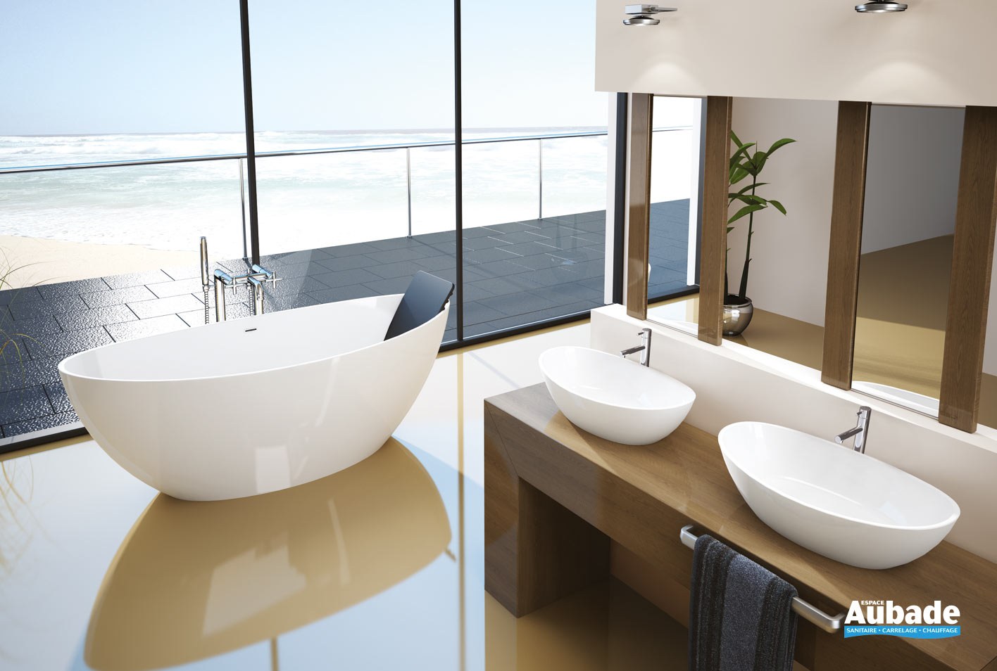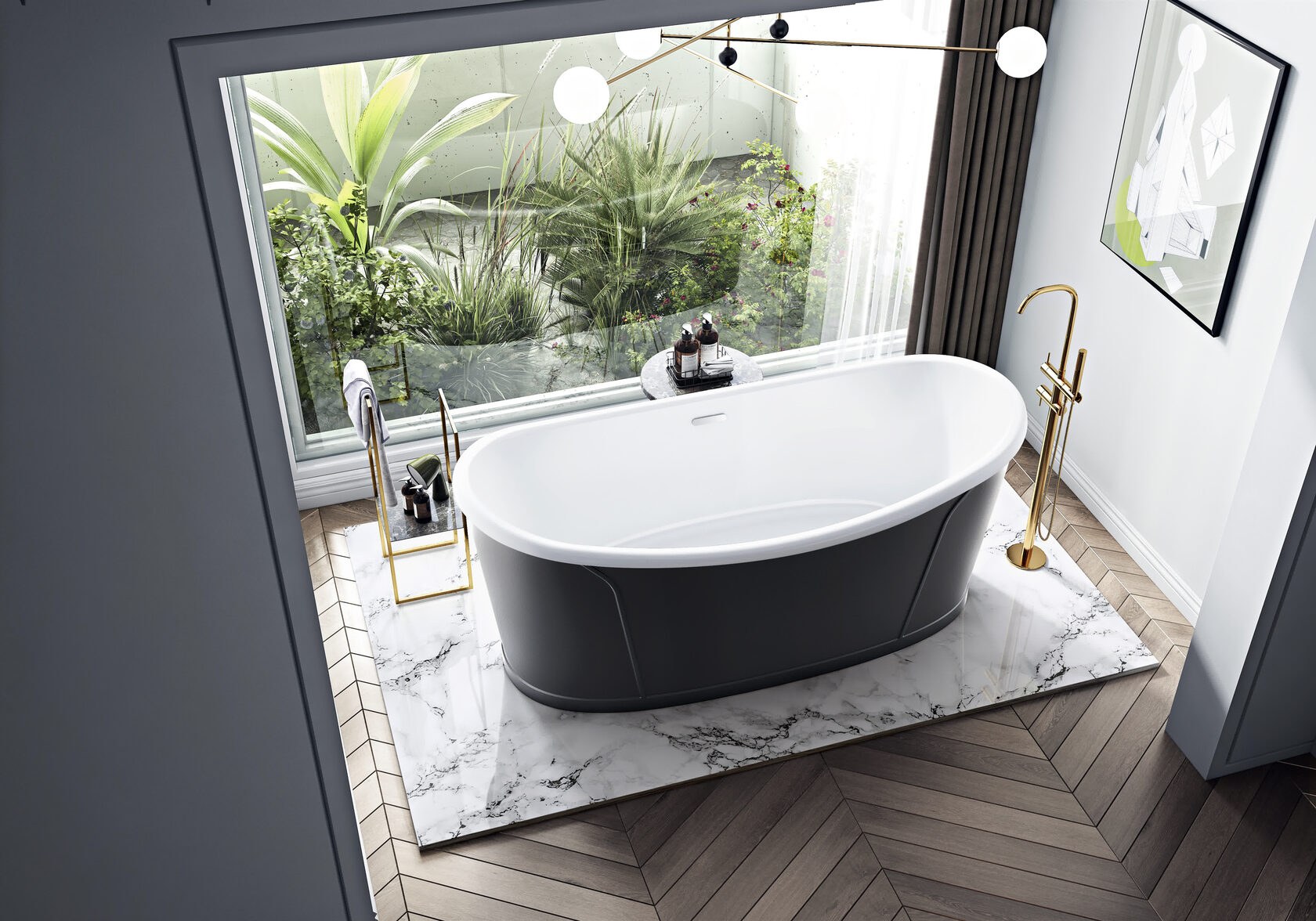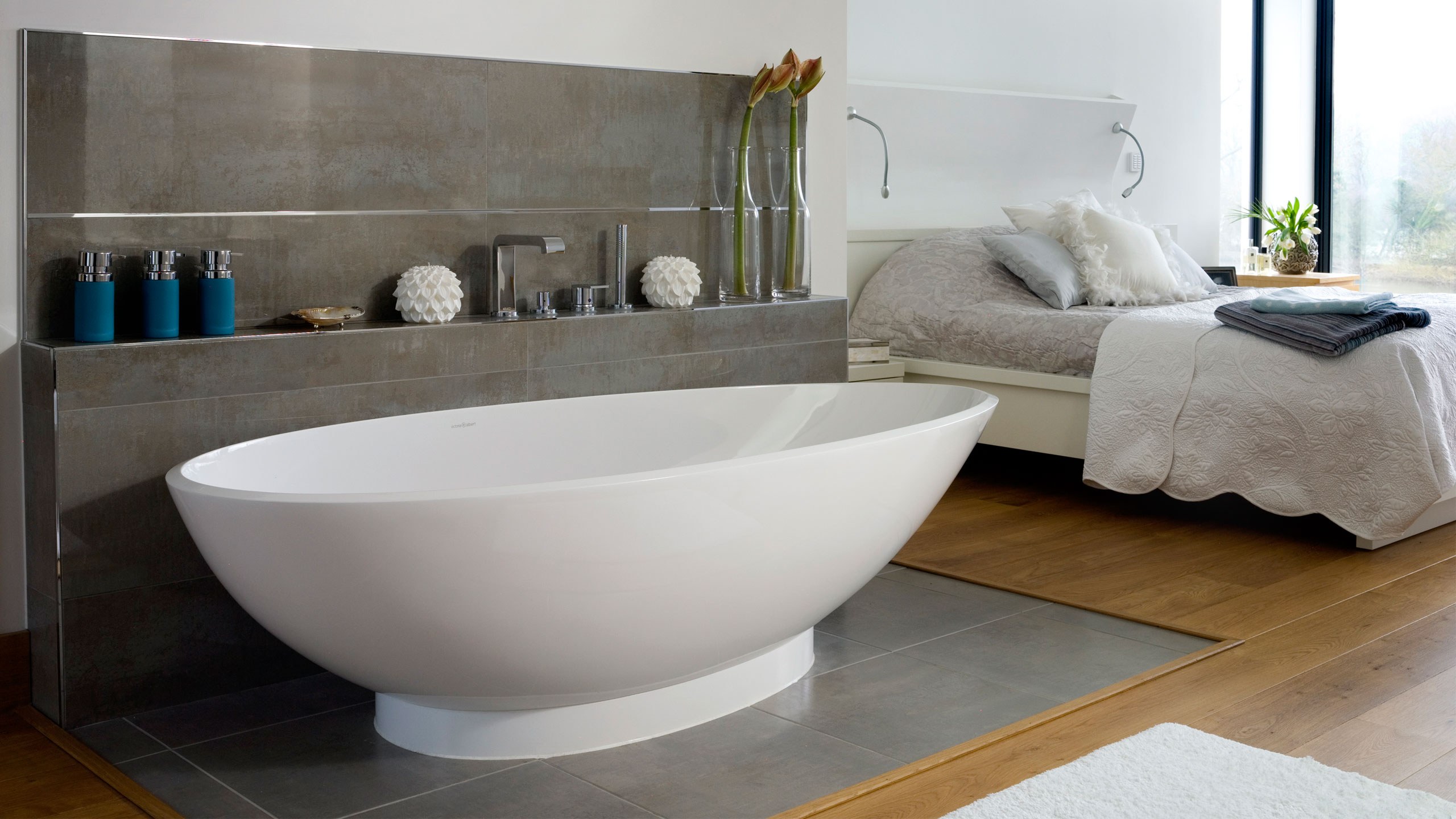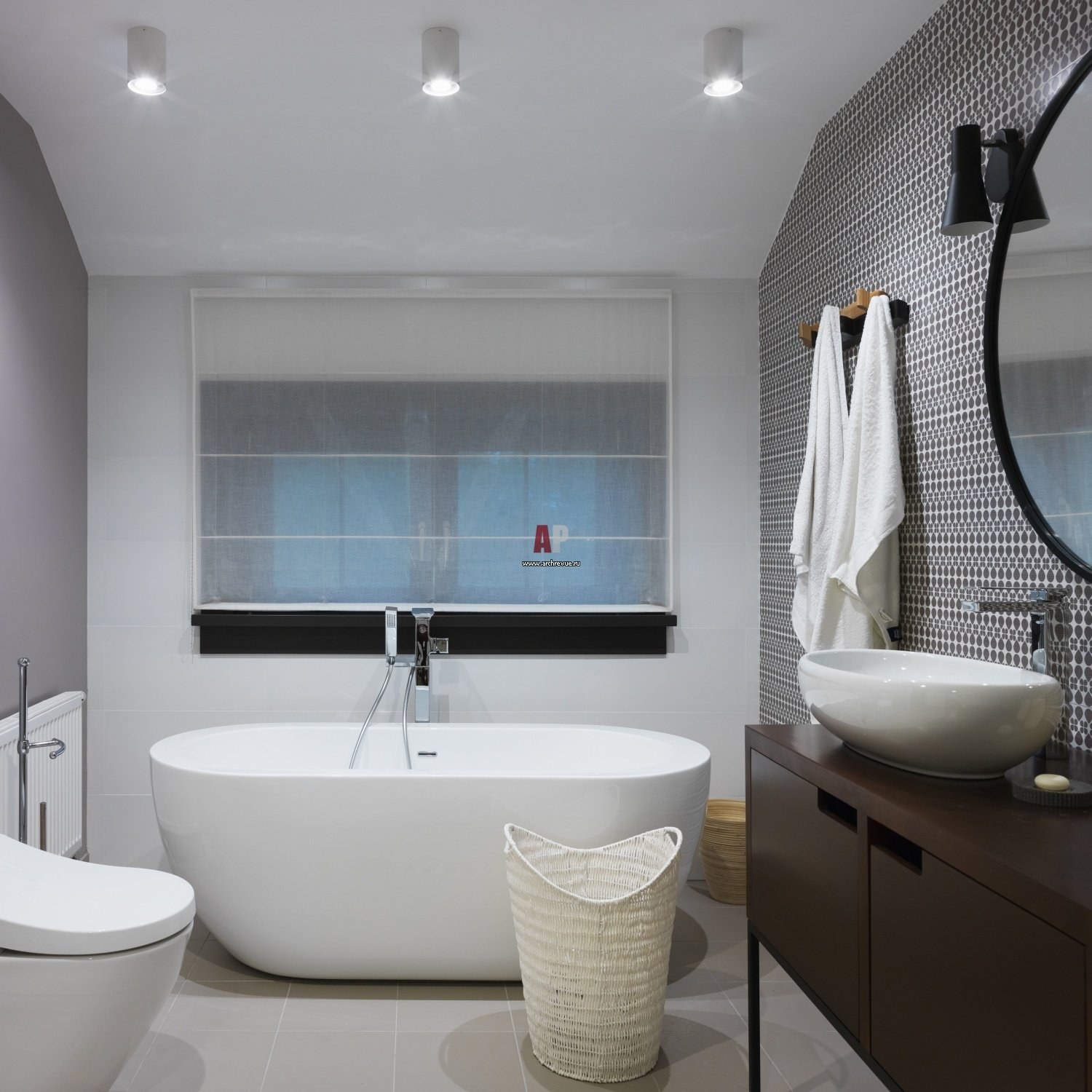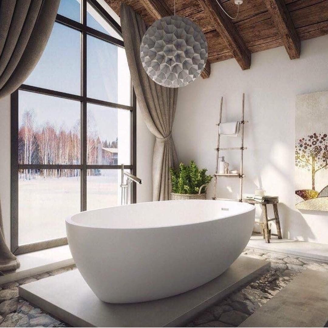 Отдельностоящая ванна в интерьере