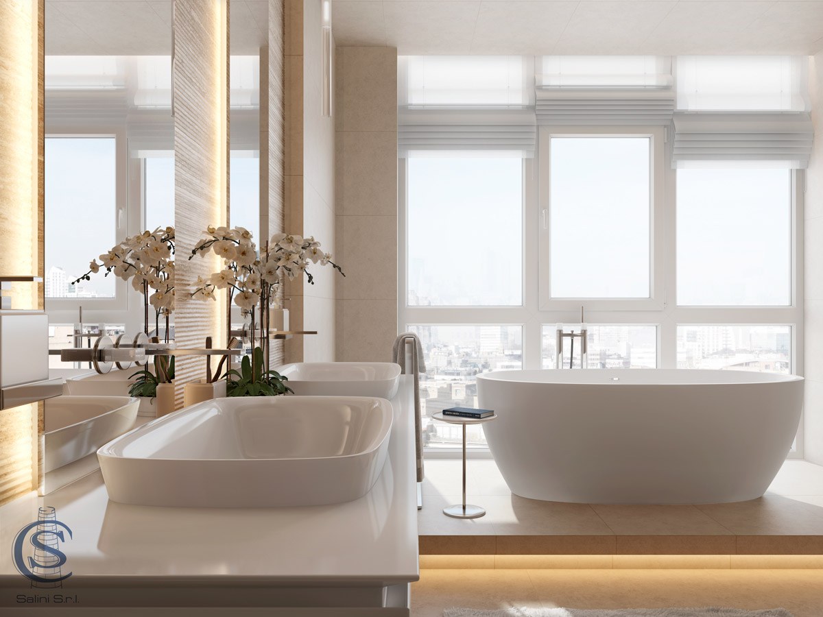 Отдельносоящая ванная в интерьере