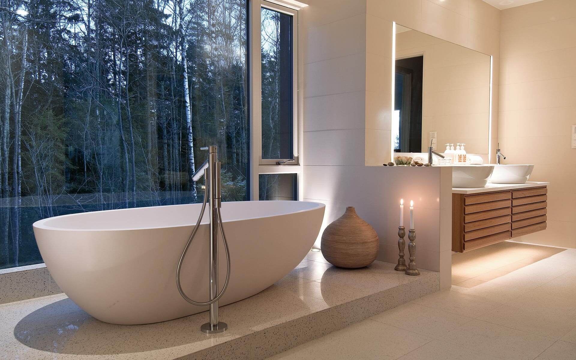 Отдельно стоящая ванна в интерьере (56 фото)