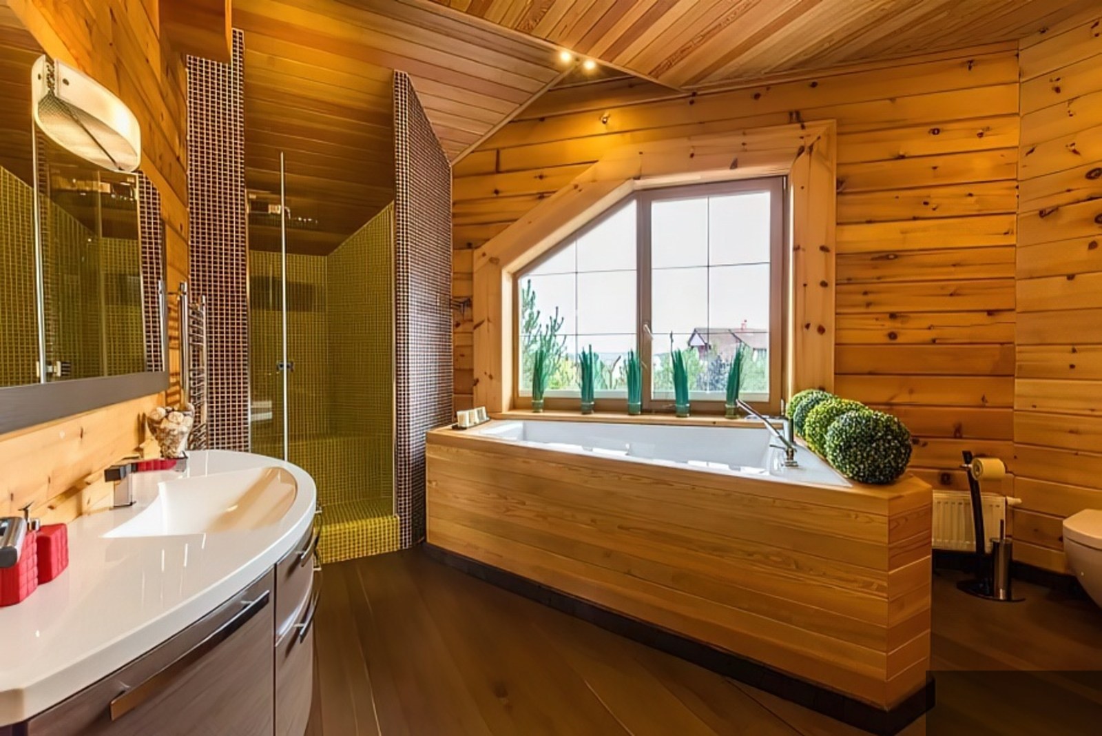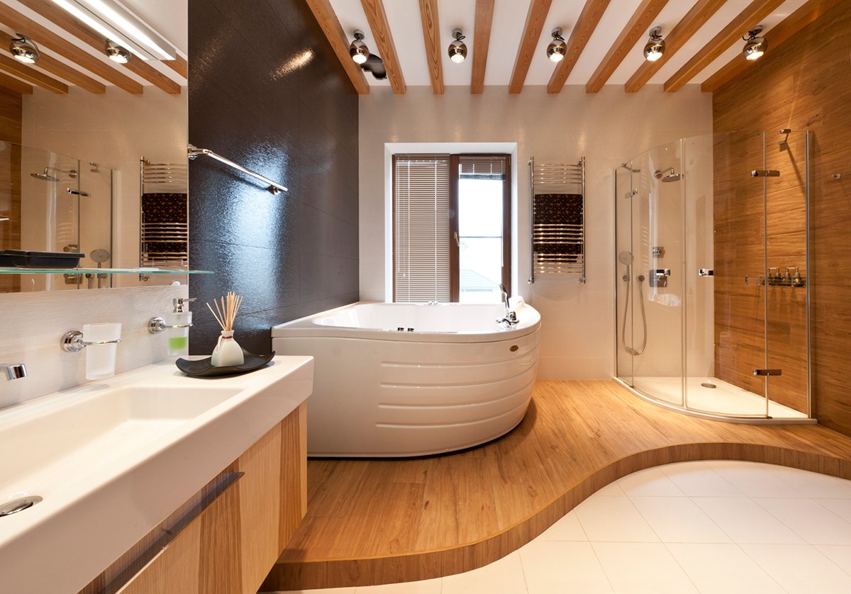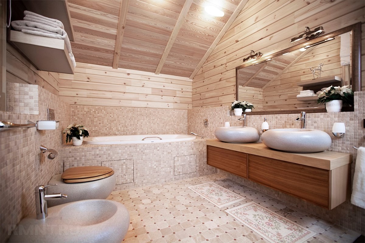 Отделка ванной комнаты дизайн в частном доме (63 фото)