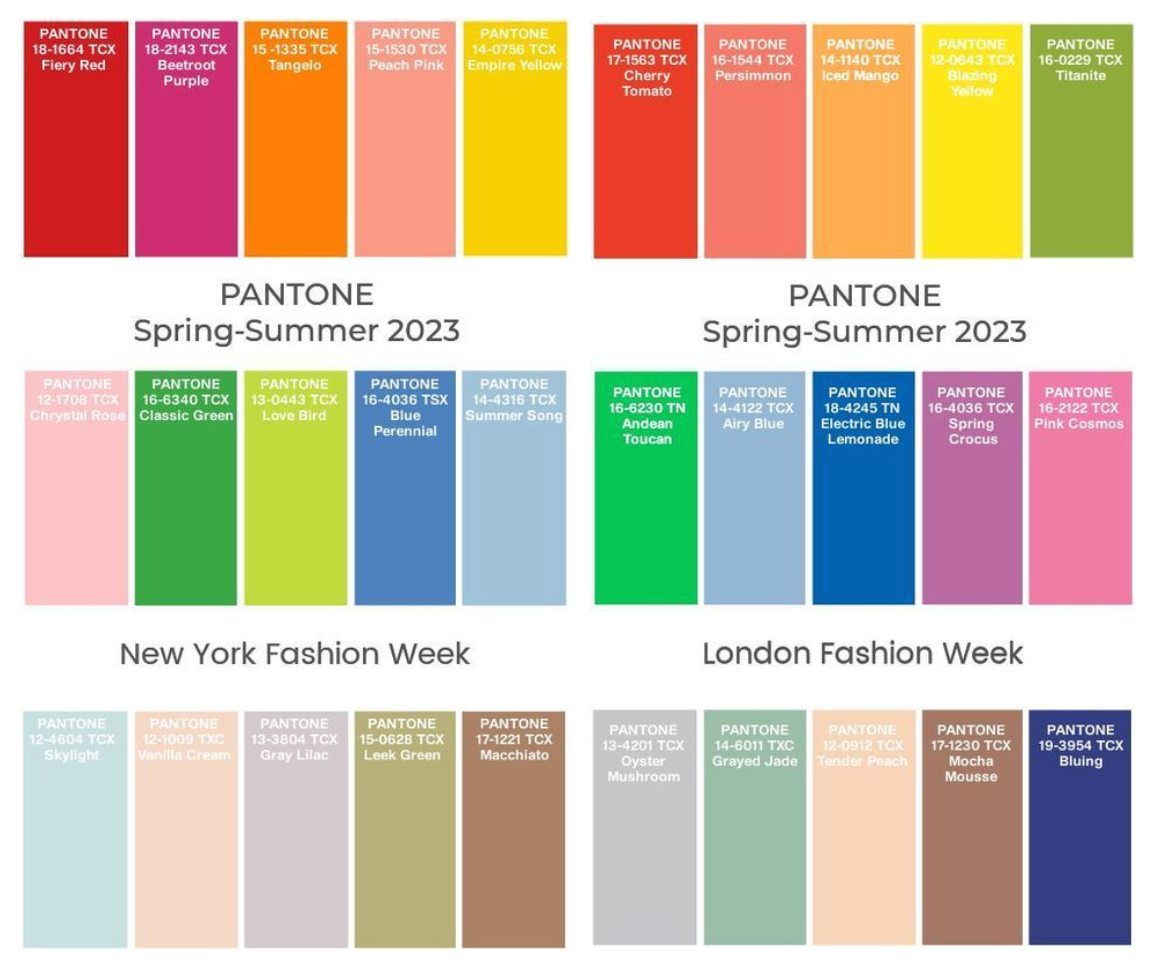 Цвета Весна лето 2023 Pantone