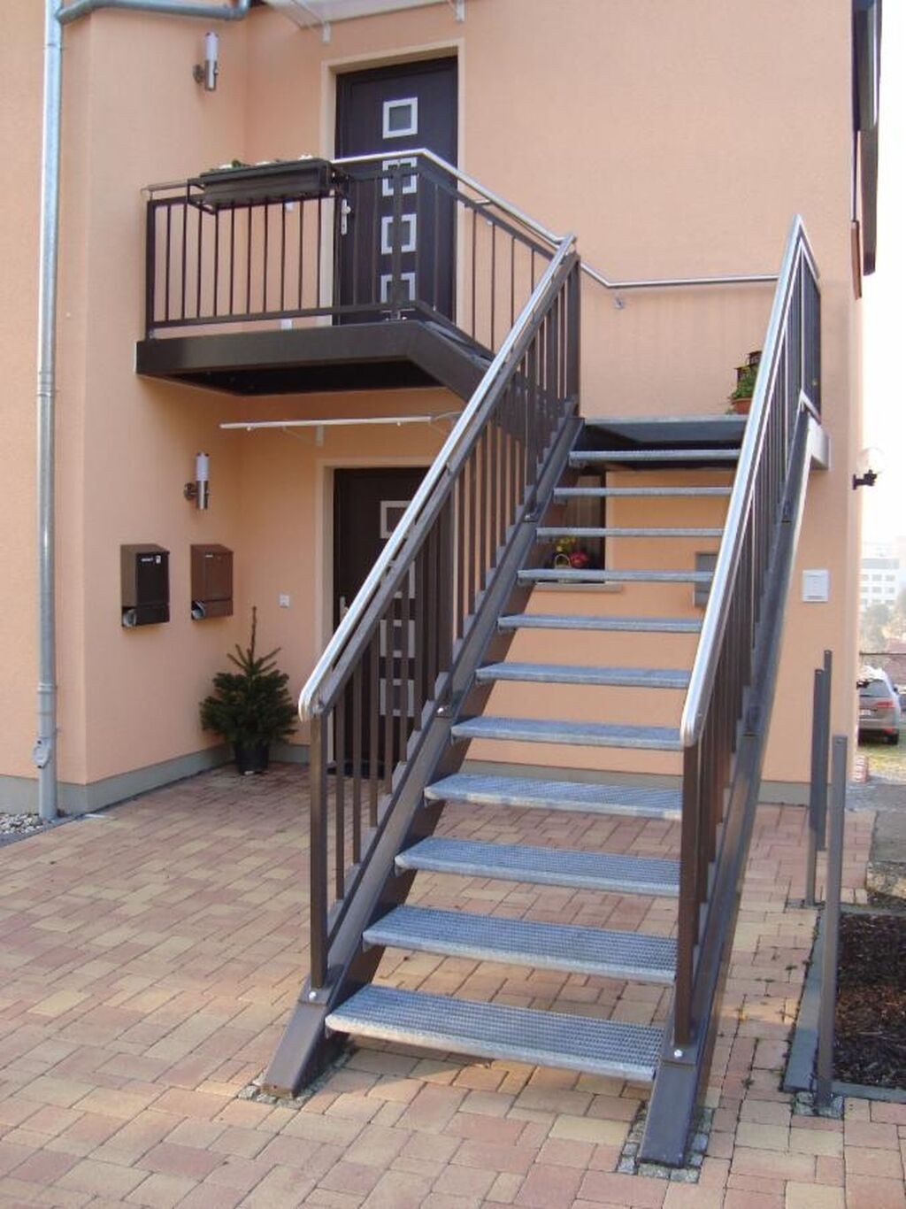 Наружная лестница на второй этаж из металла
