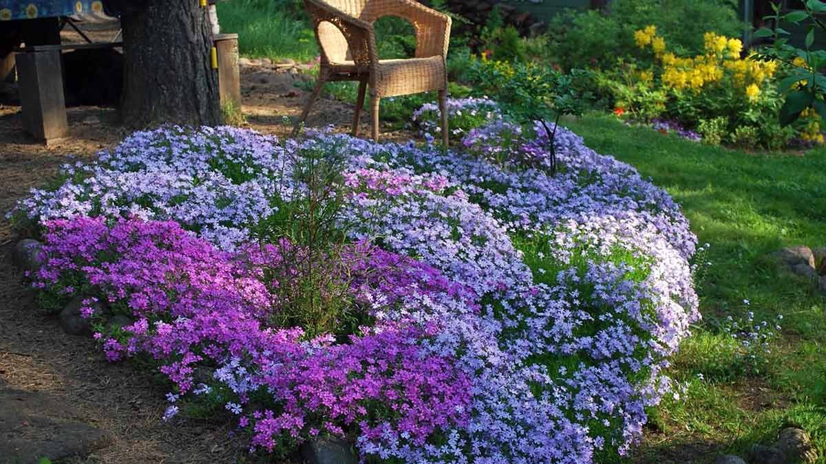 Клумба Мальва дельфиниум Хоста Флоксы рудбекия