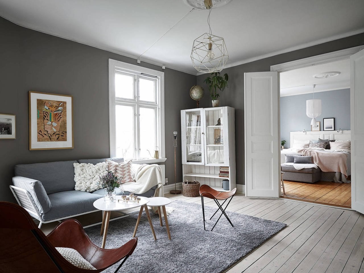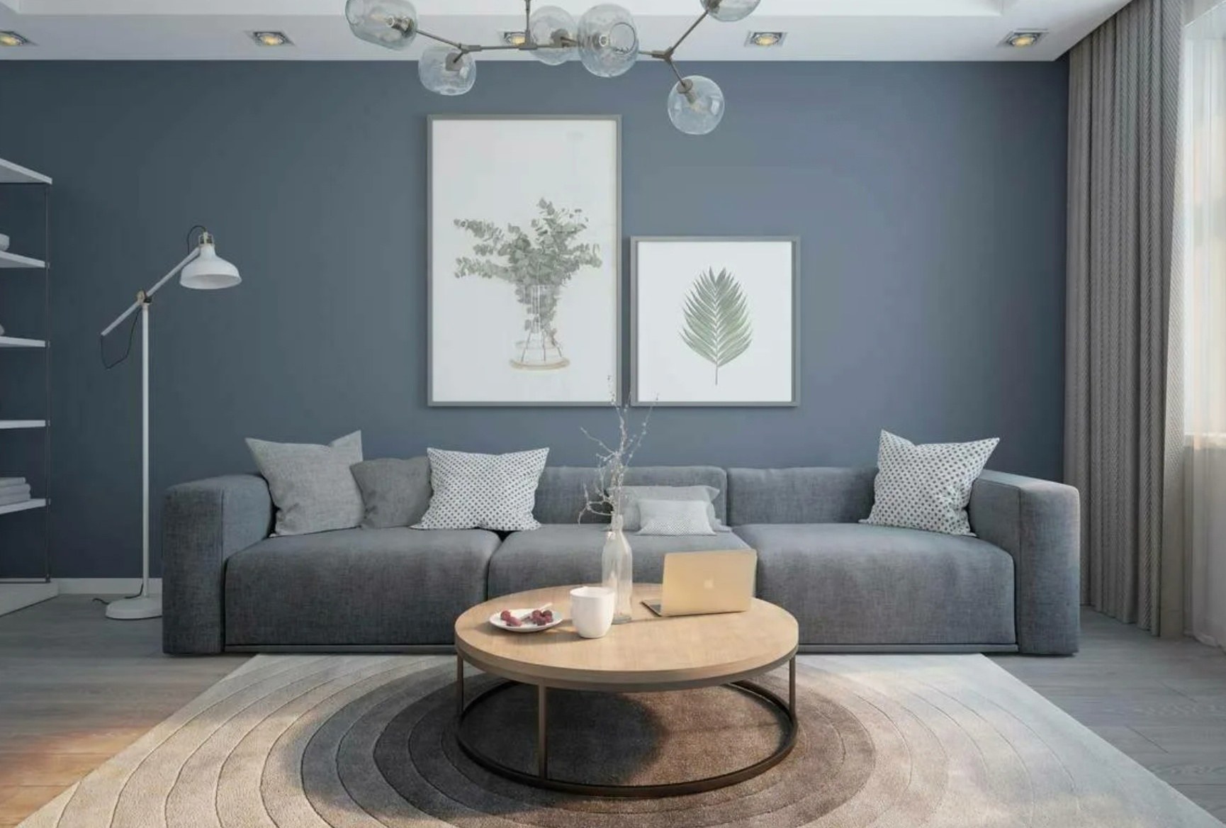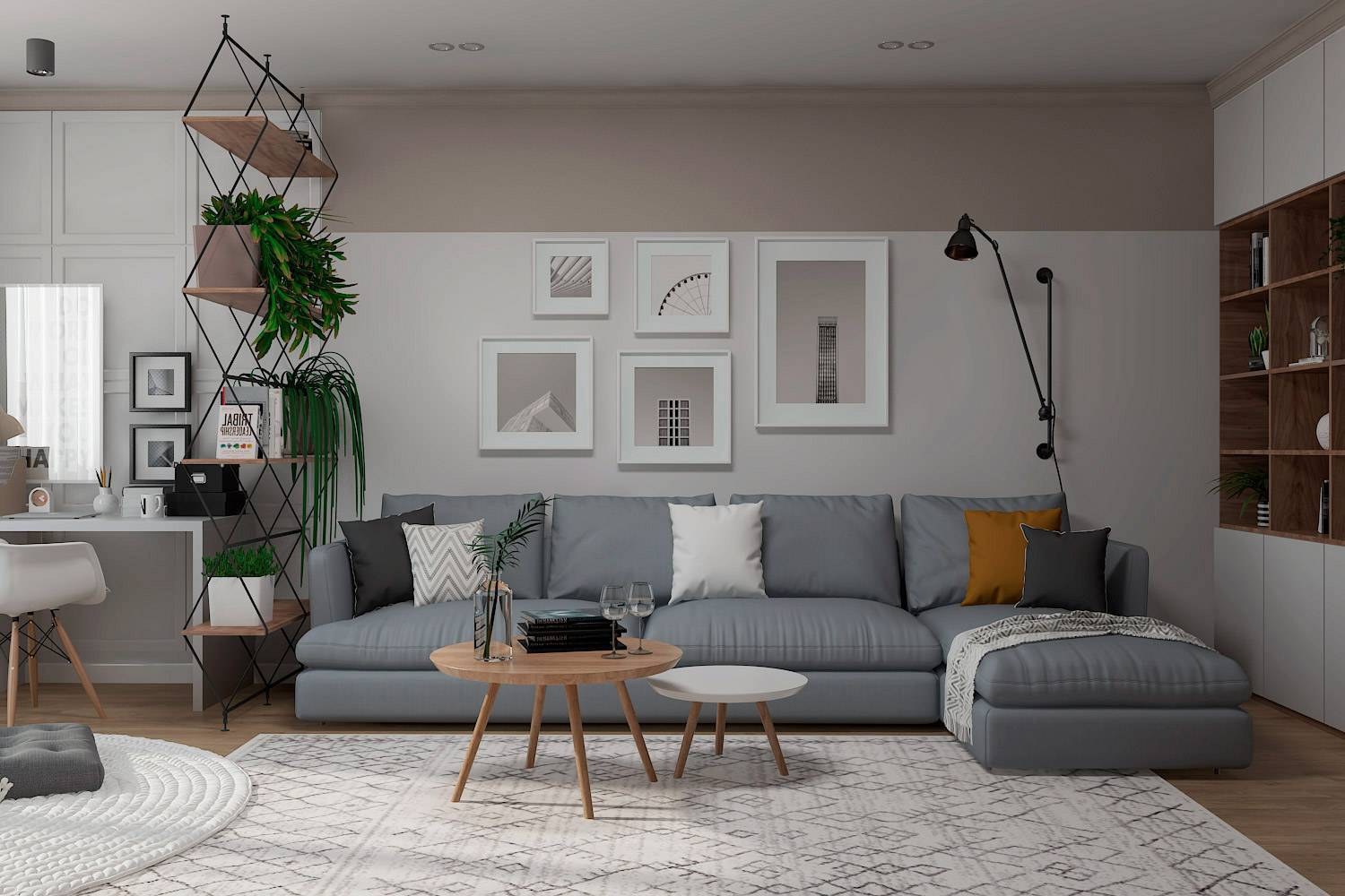 Серая гостиная в скандинавском стиле
