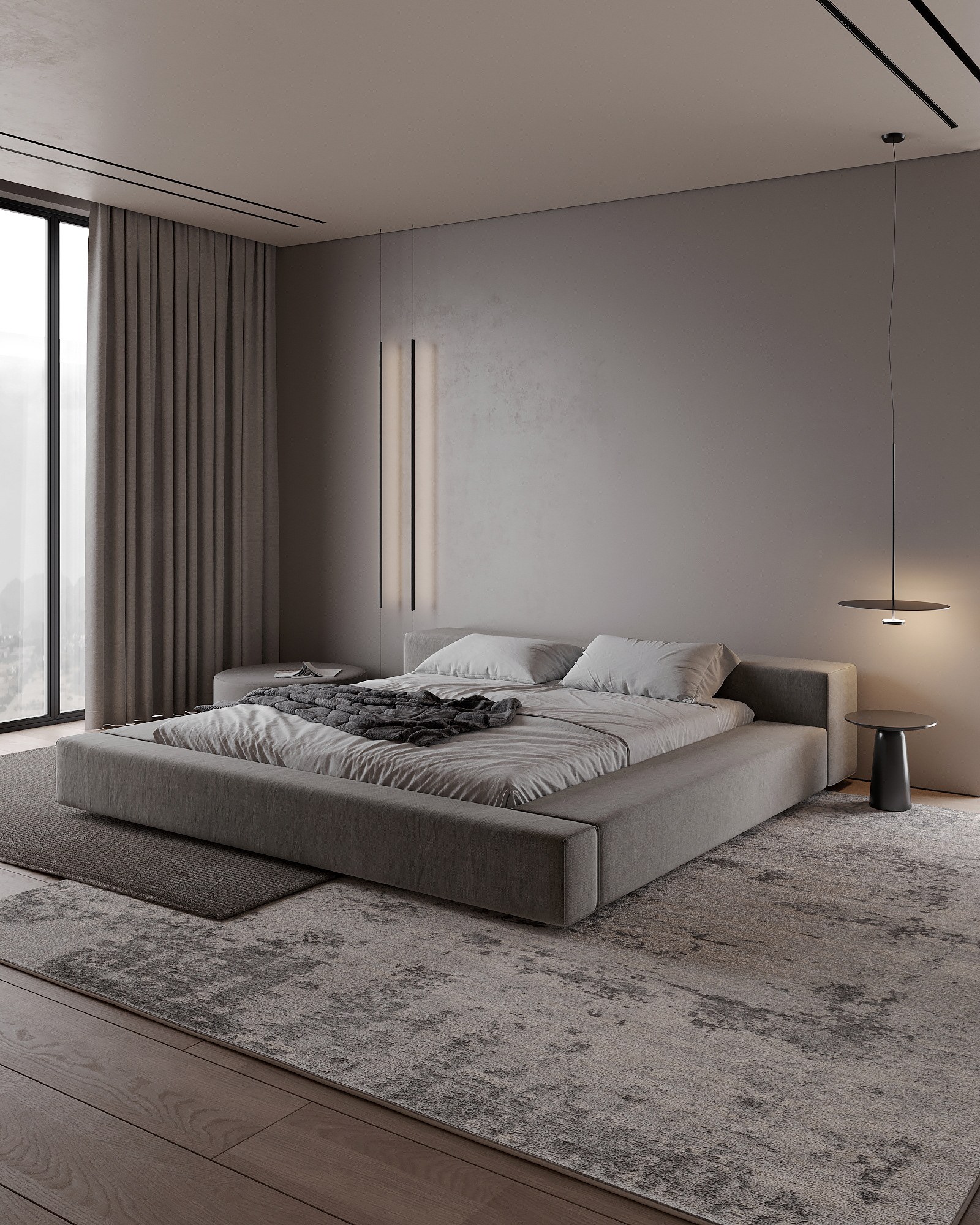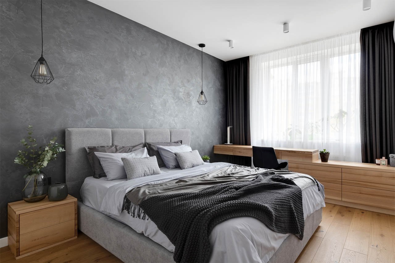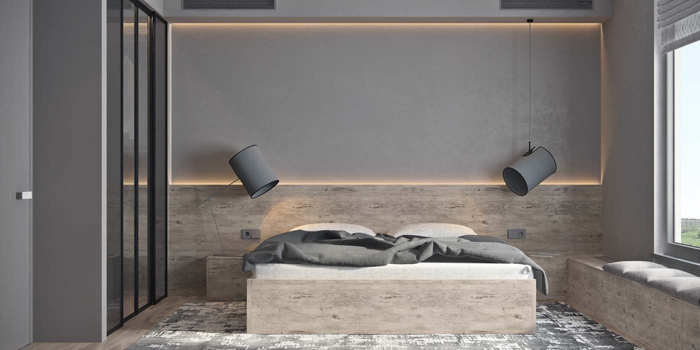Дизайн спальни 2023 в серых тонах Минимализм
