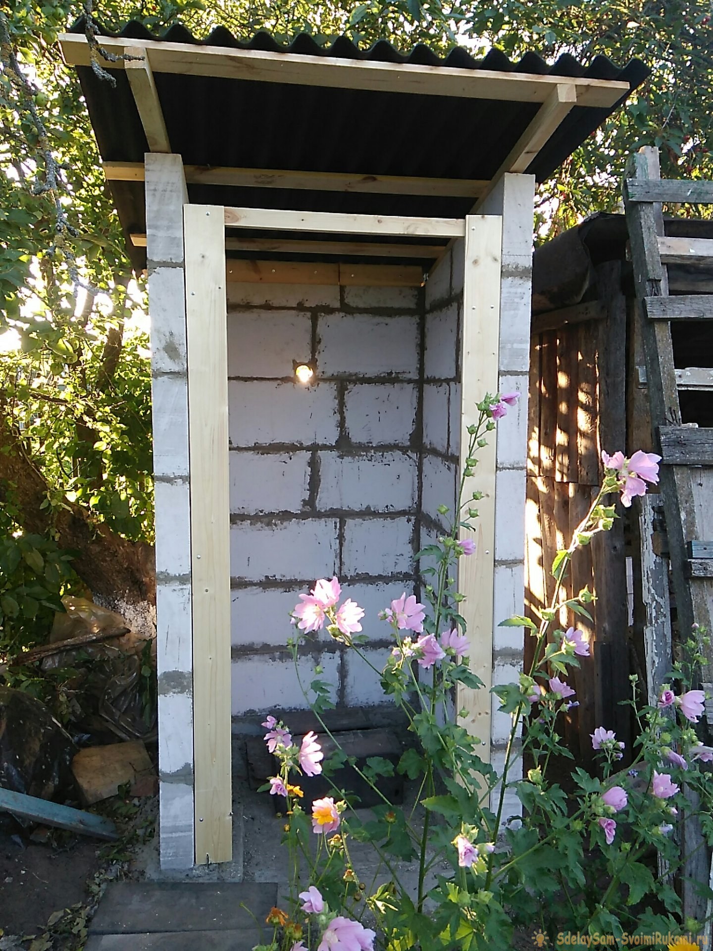 Туалет из блоков на даче своими руками