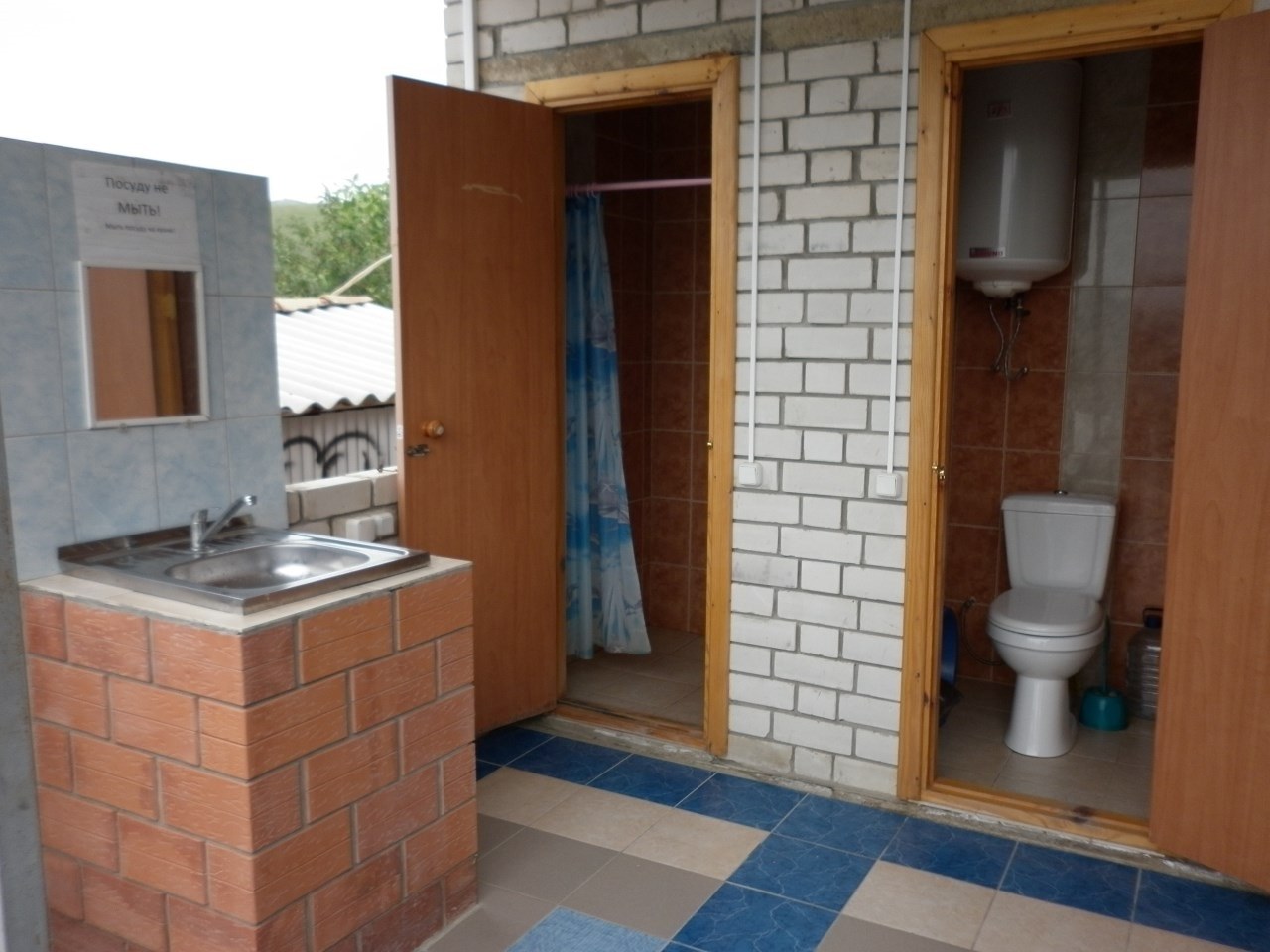 Туалет и душ на даче из кирпича