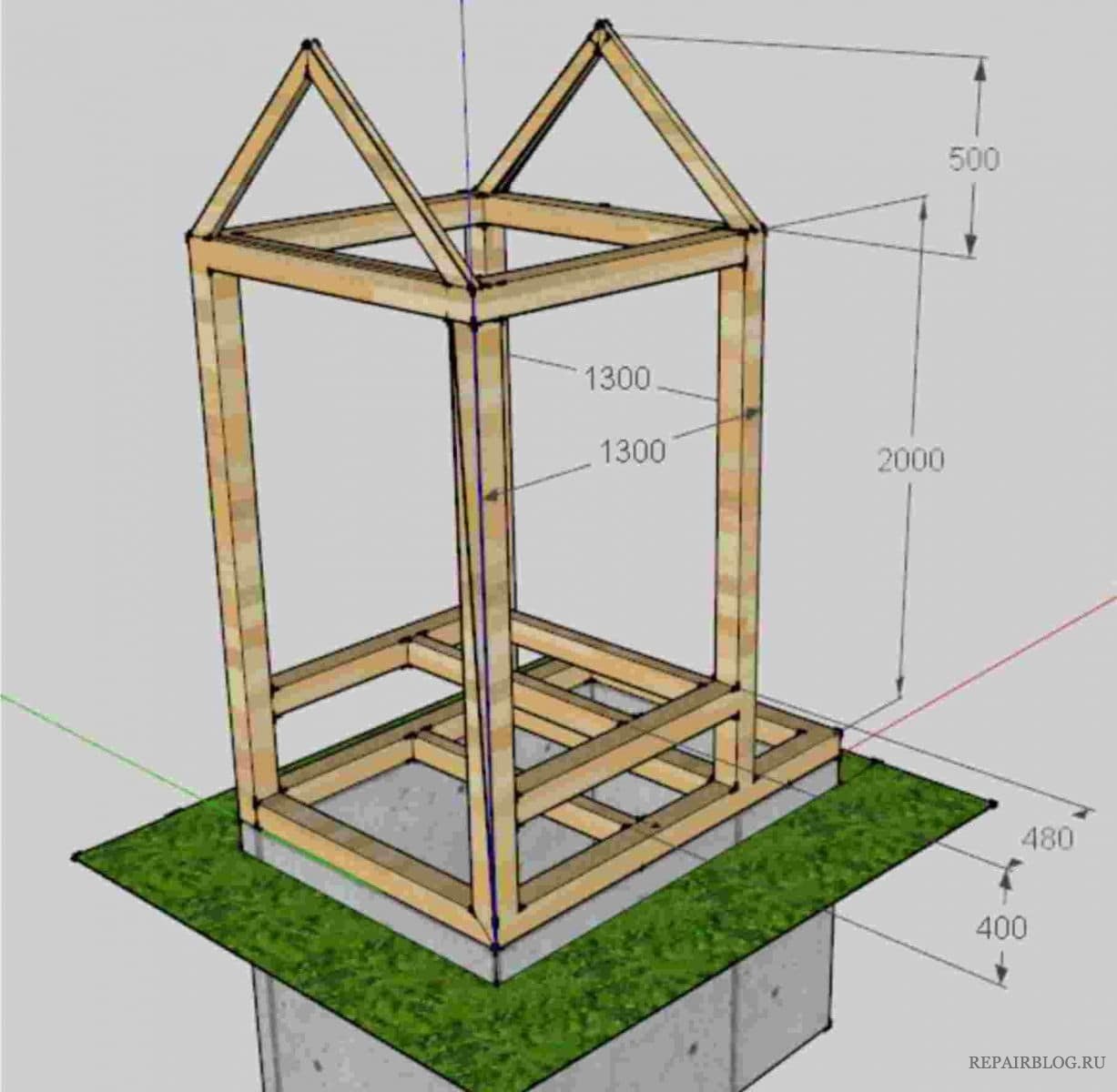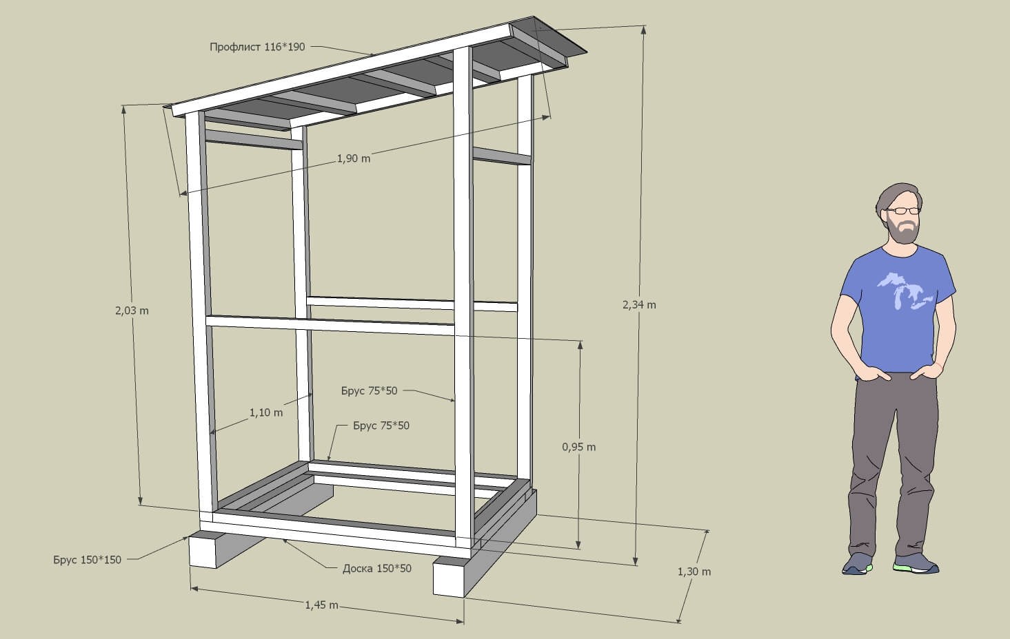 Туалет из профтрубы размер чертёж