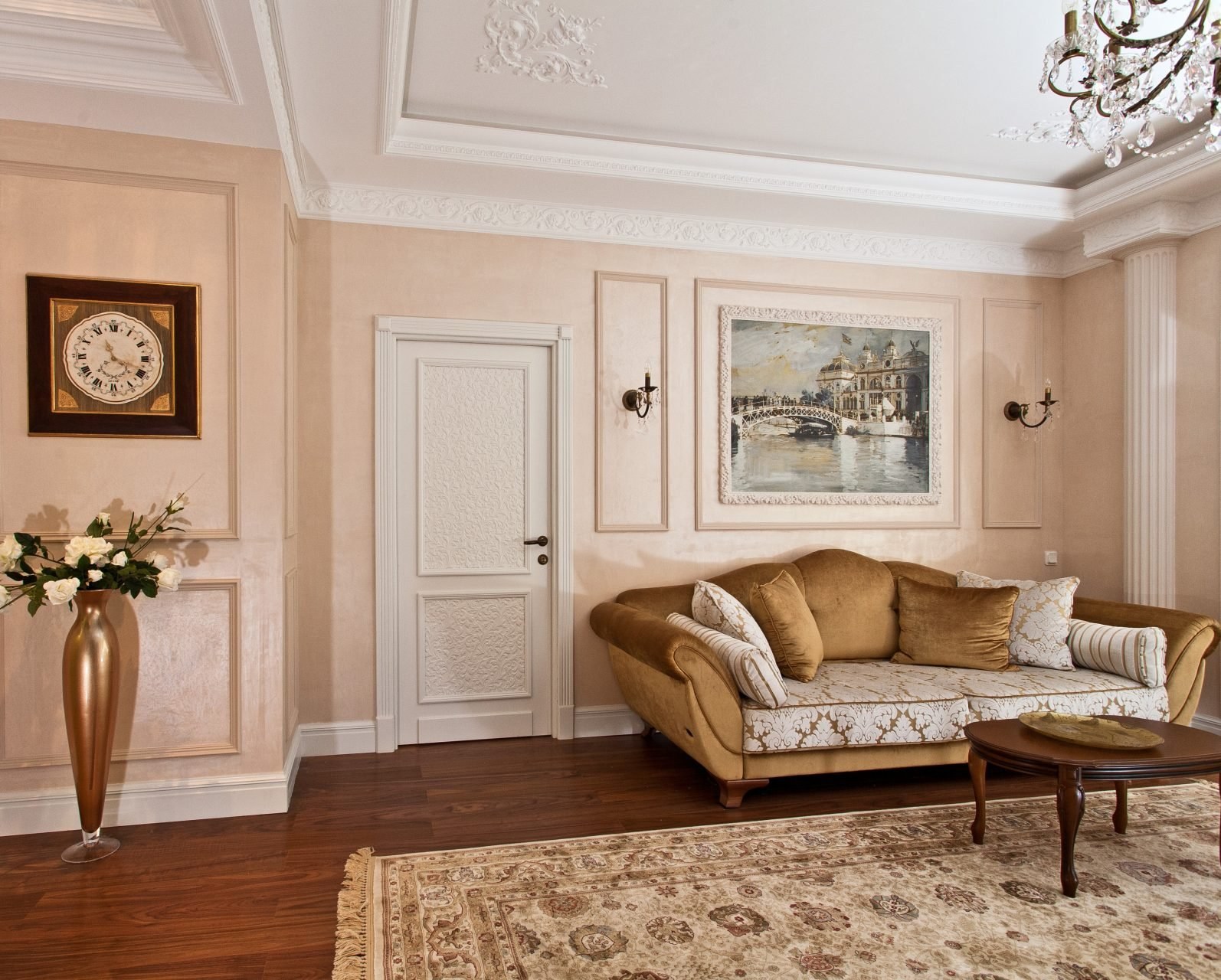 Молдинги в интерьере гостиной