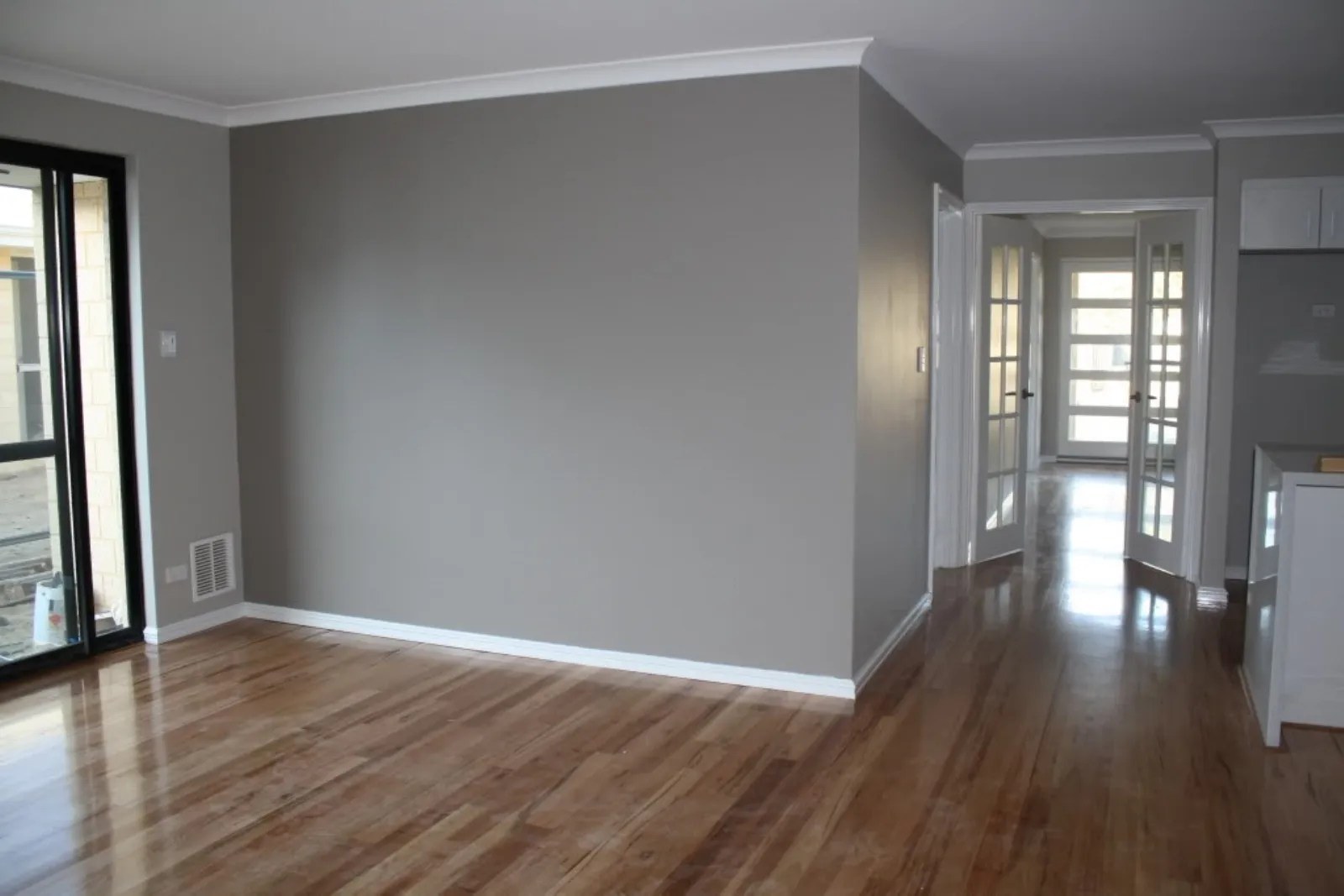 Интерьер с белыми дверями и плинтусами