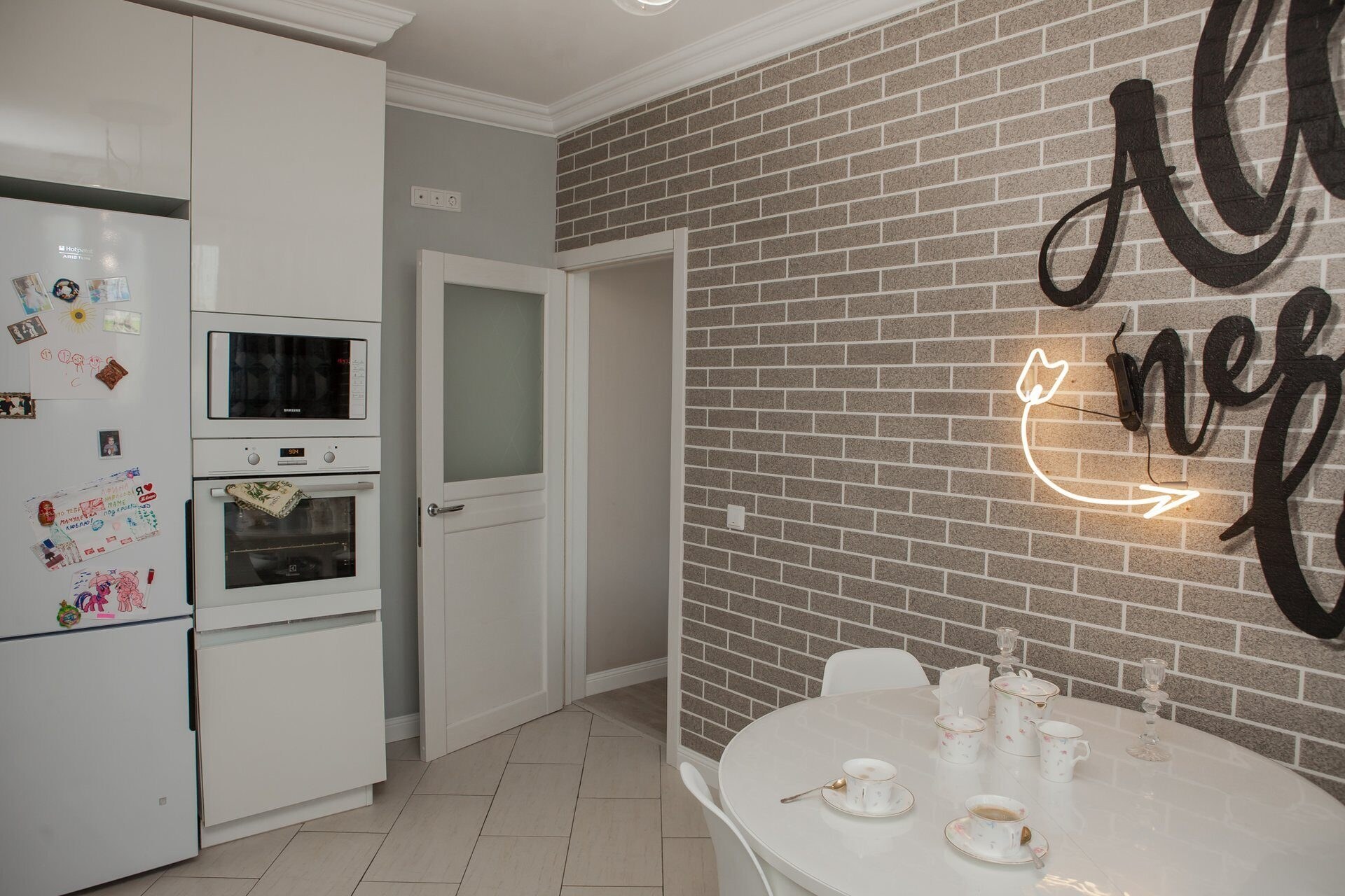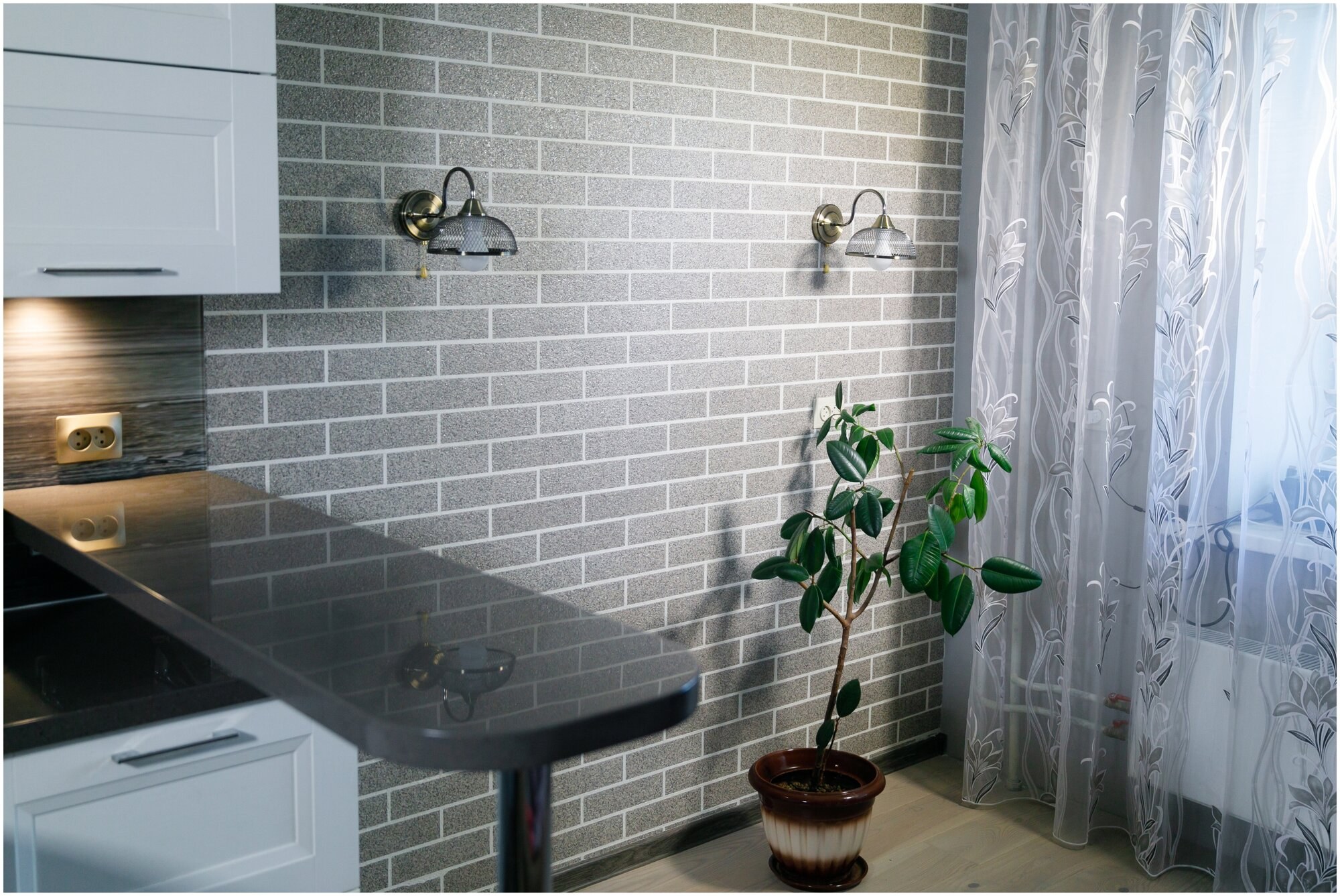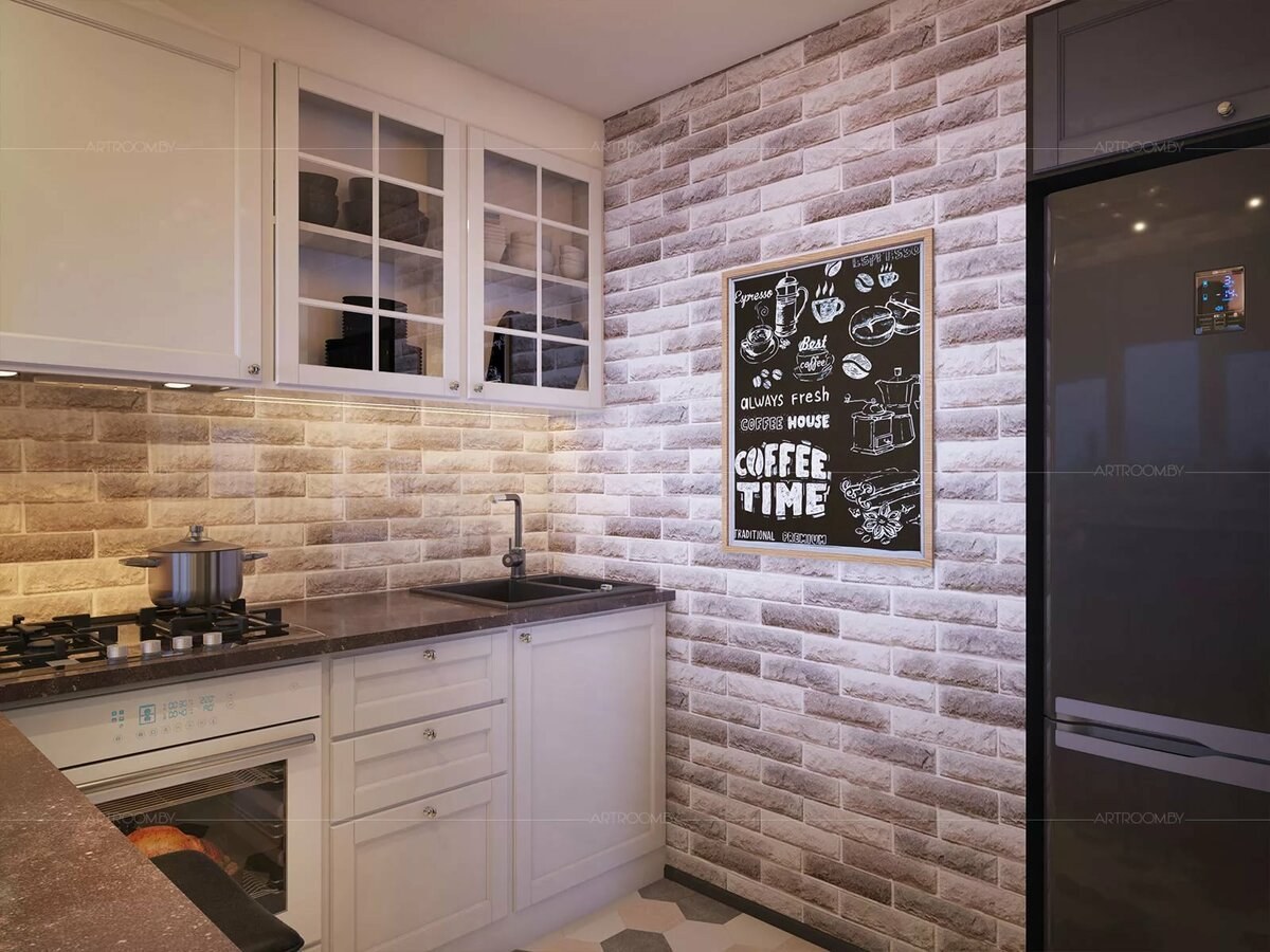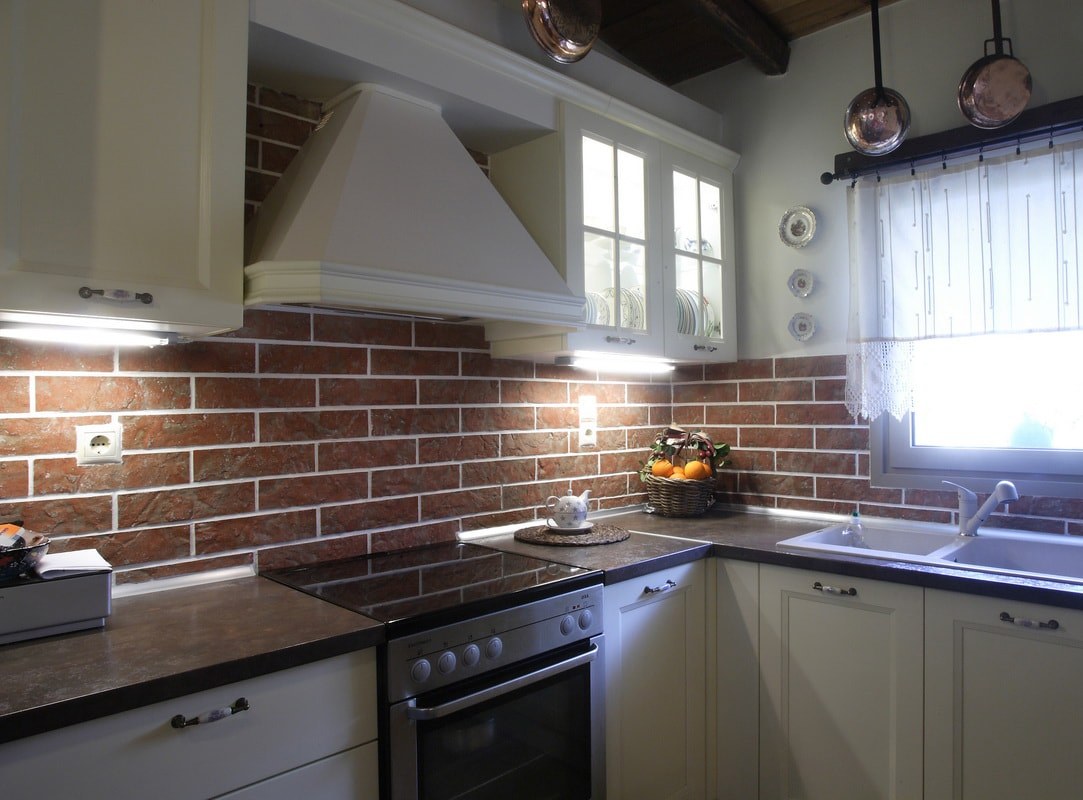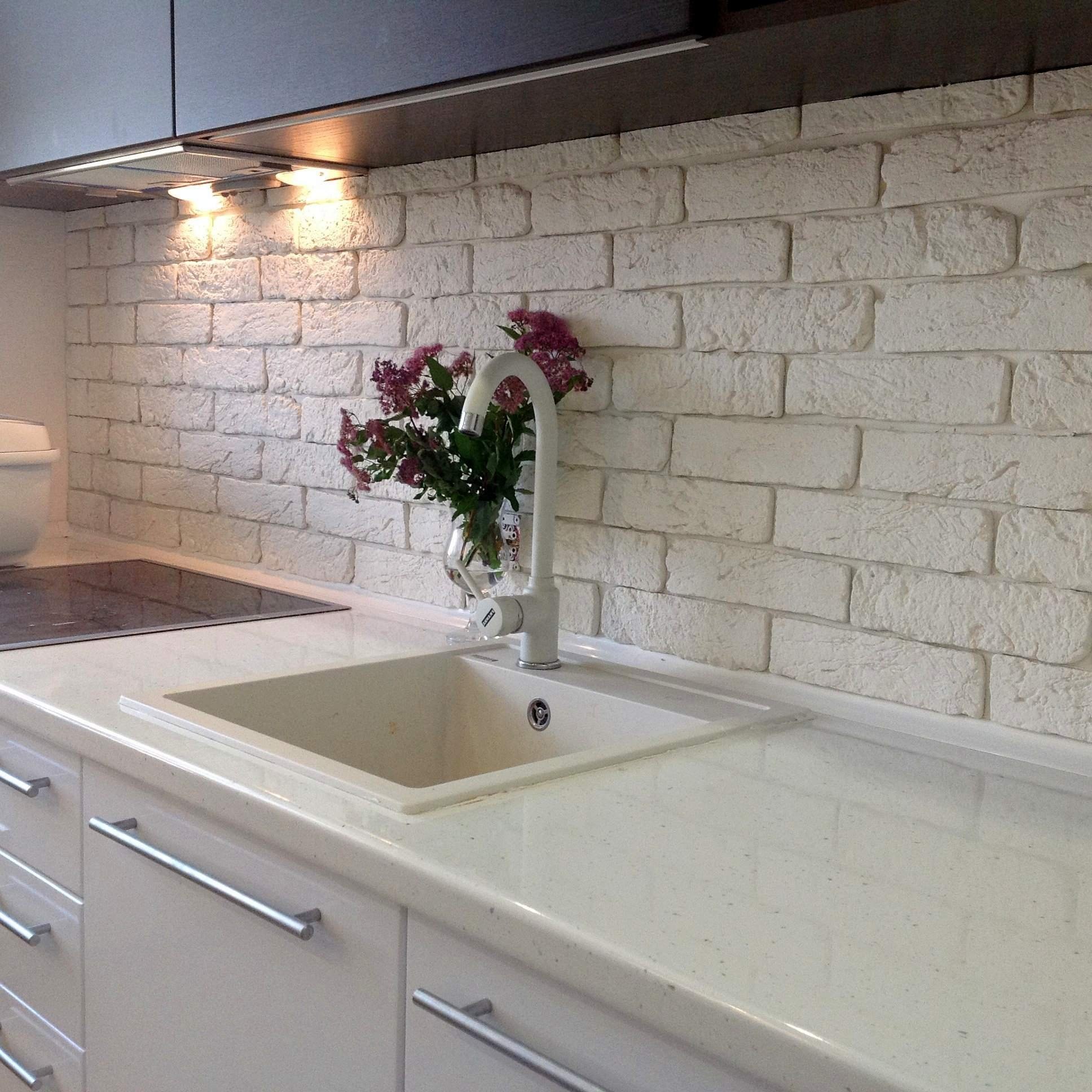 Отделка кухни декоративным кирпичом