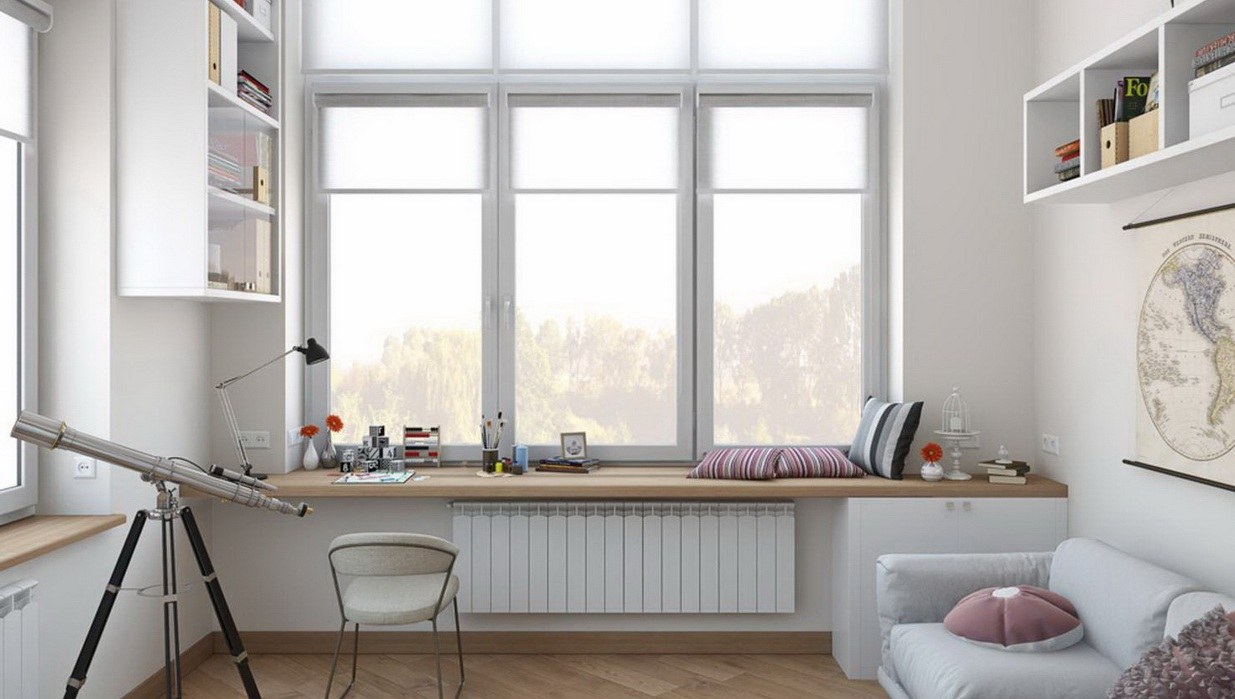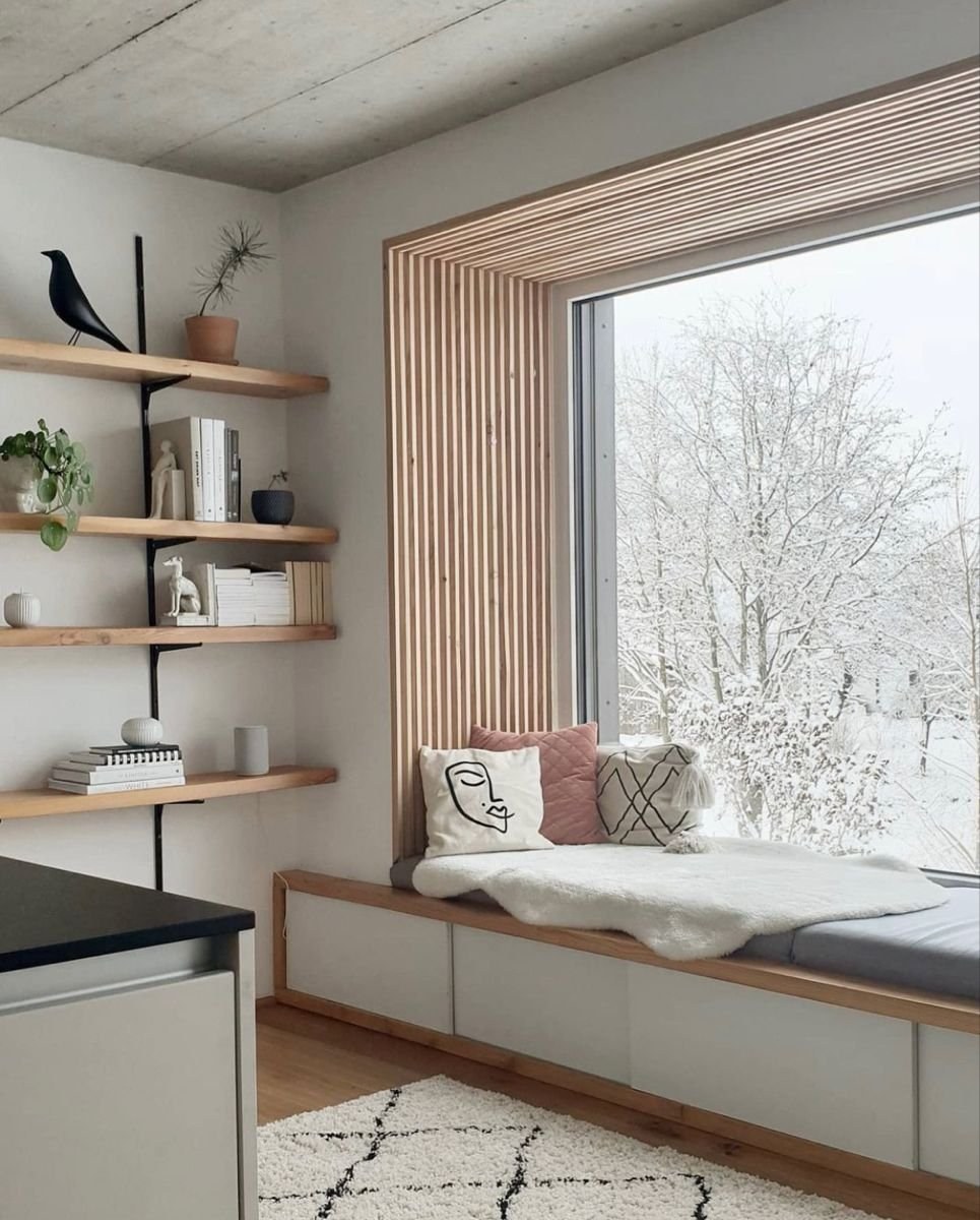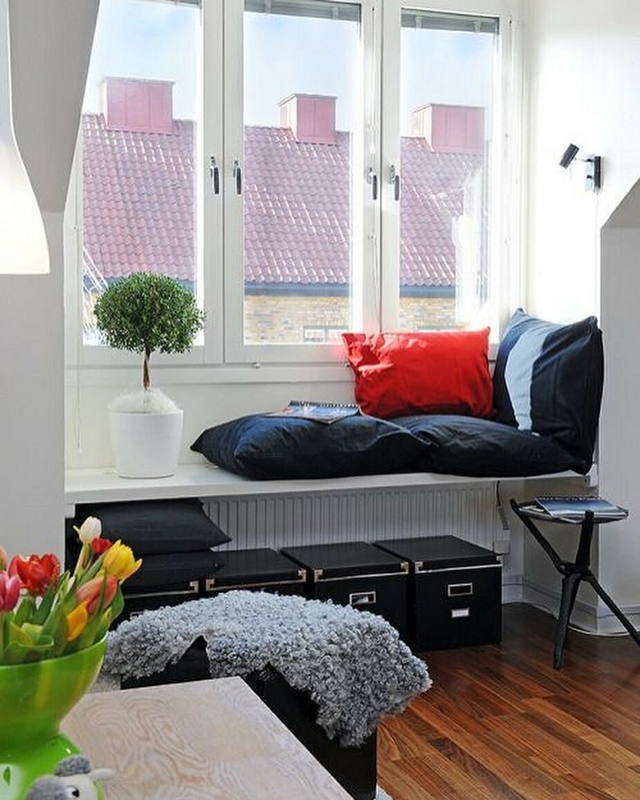Подоконник-скамья в интерьере