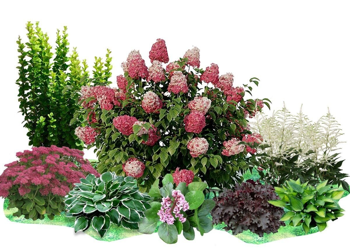 Миксбордеры хвойные гортензии Барбарис