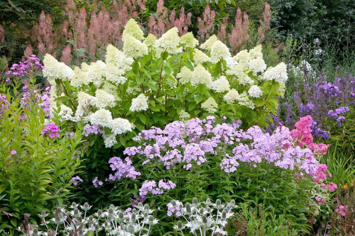 Миксбордер с гортензией метельчатой