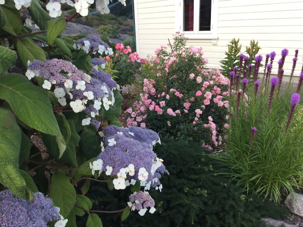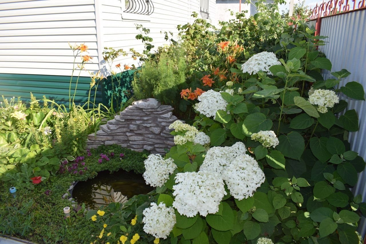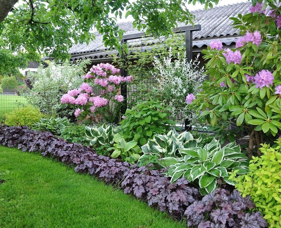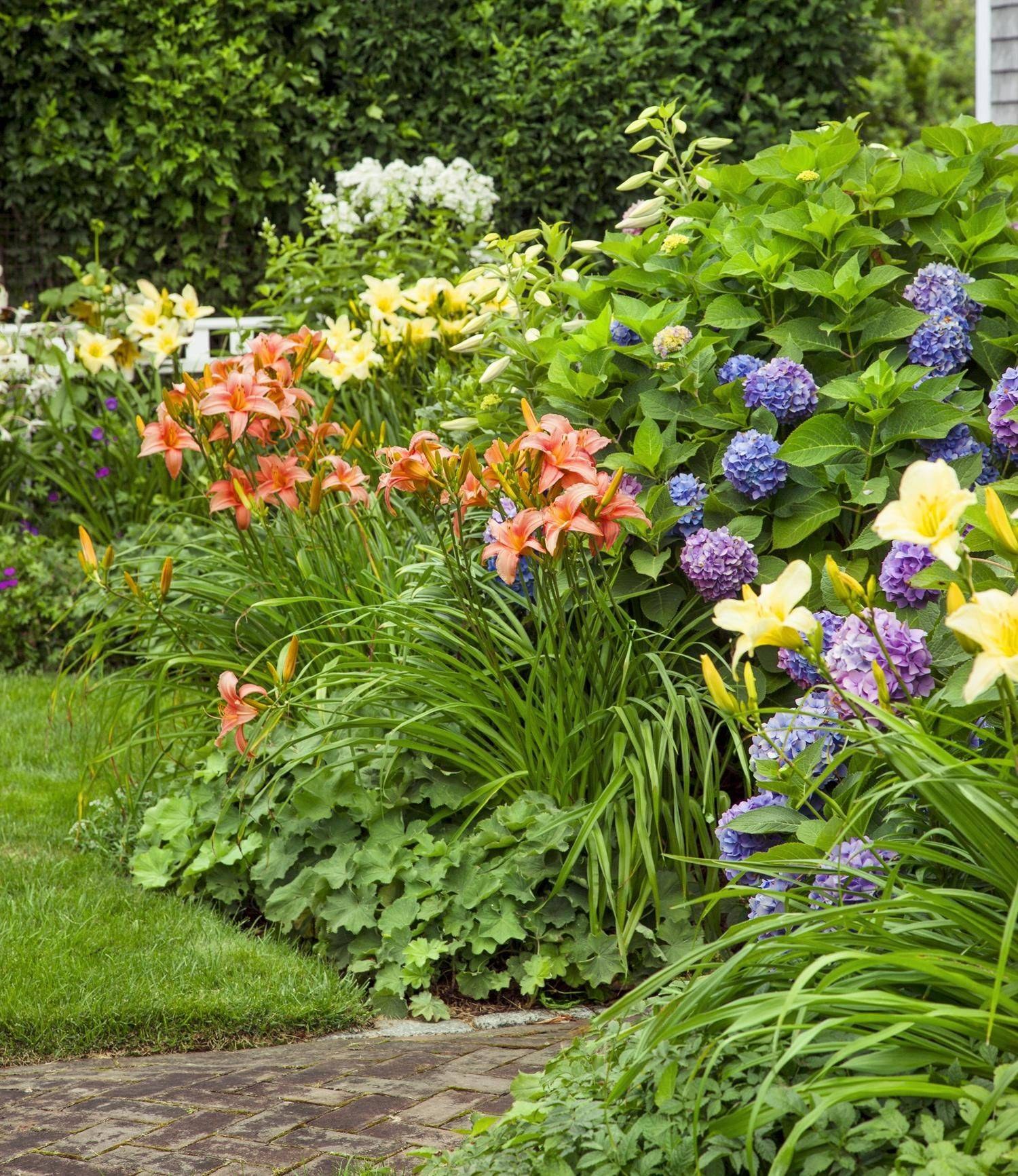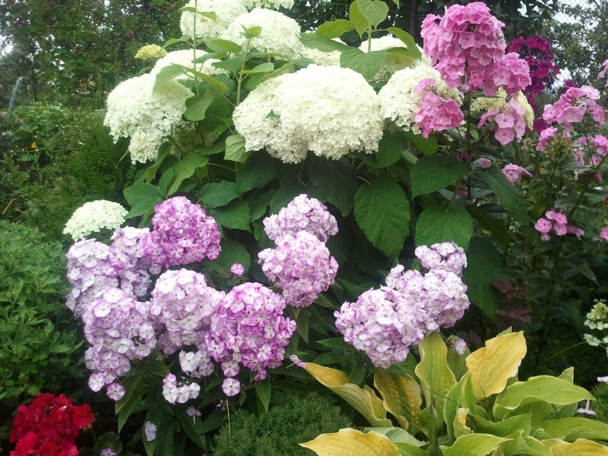 Миксбордер лилейник гортензия и Хоста