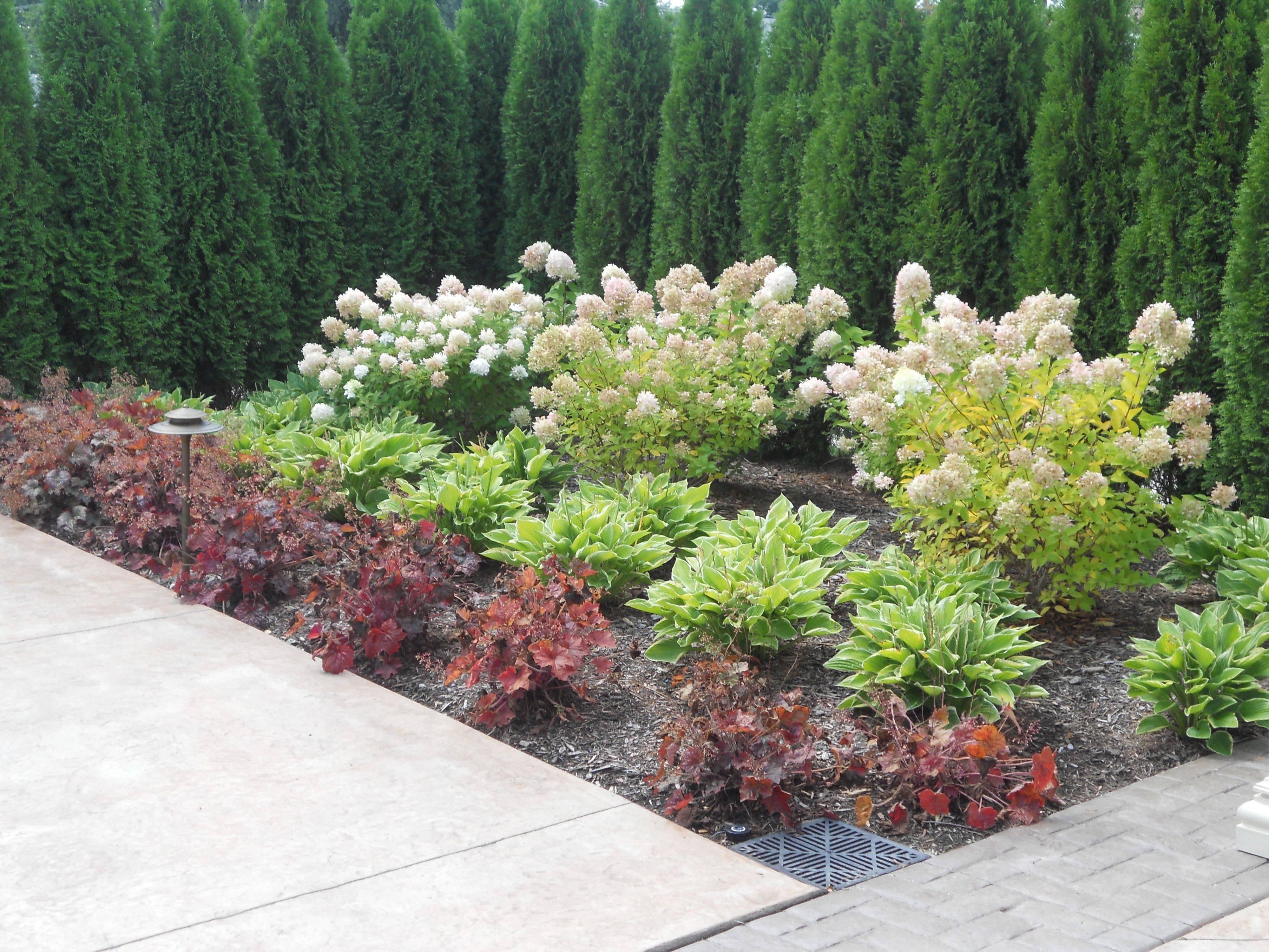 Миксбордер с туей, гортензией, барбарисом