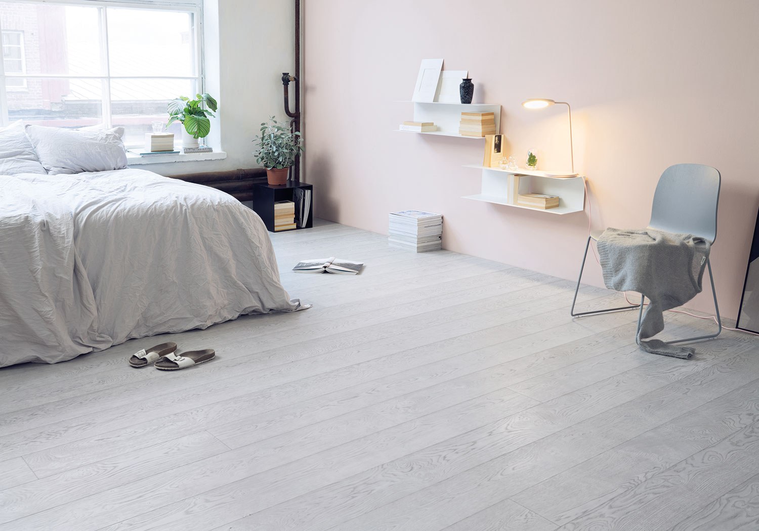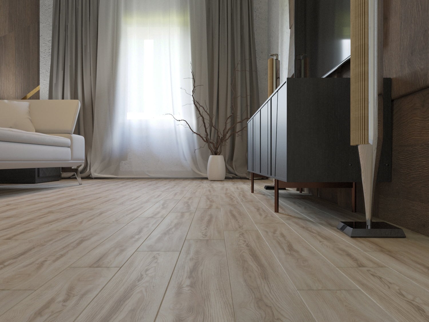 Серый ламинат в Сканди интерьере