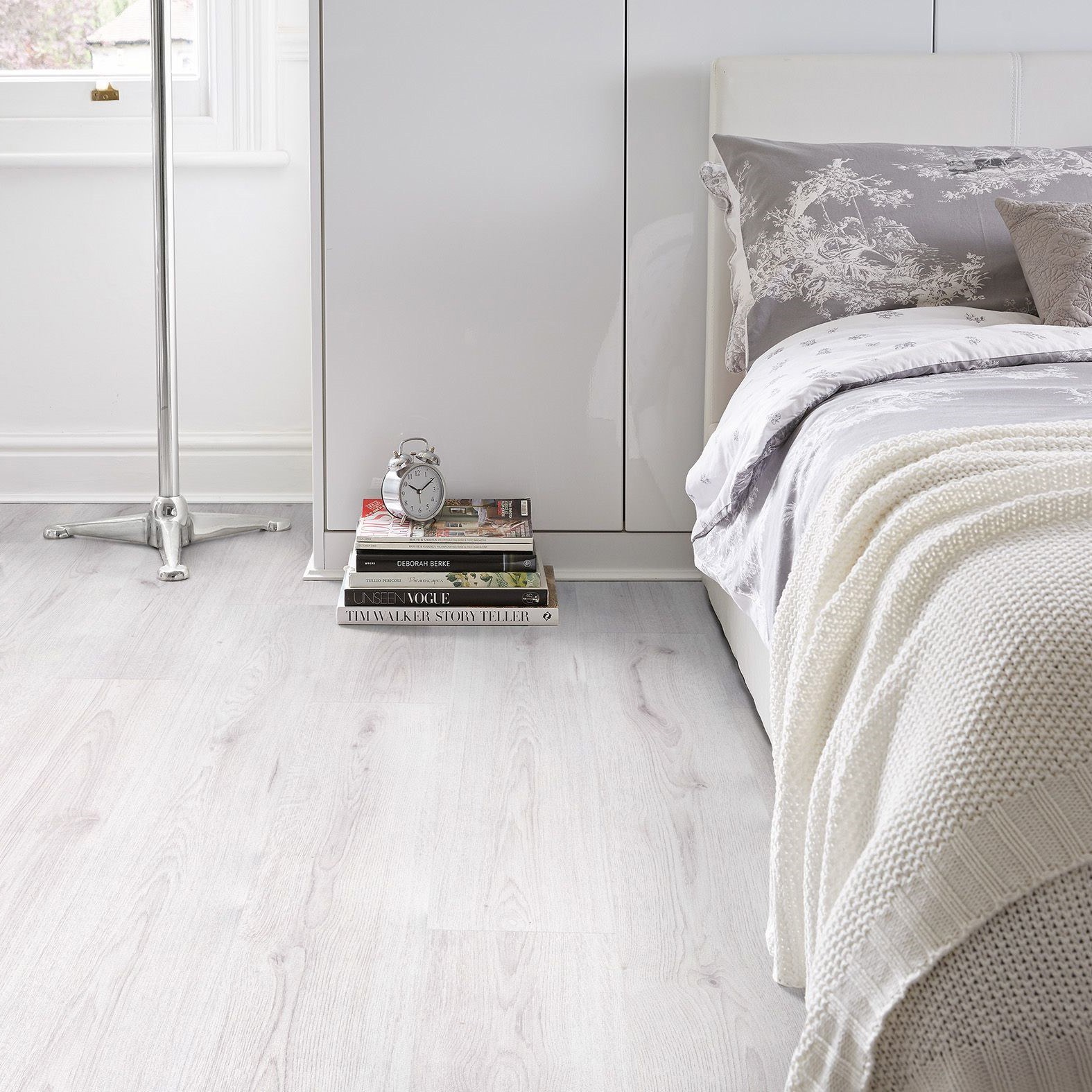 Бело серый ламинат Квик степ