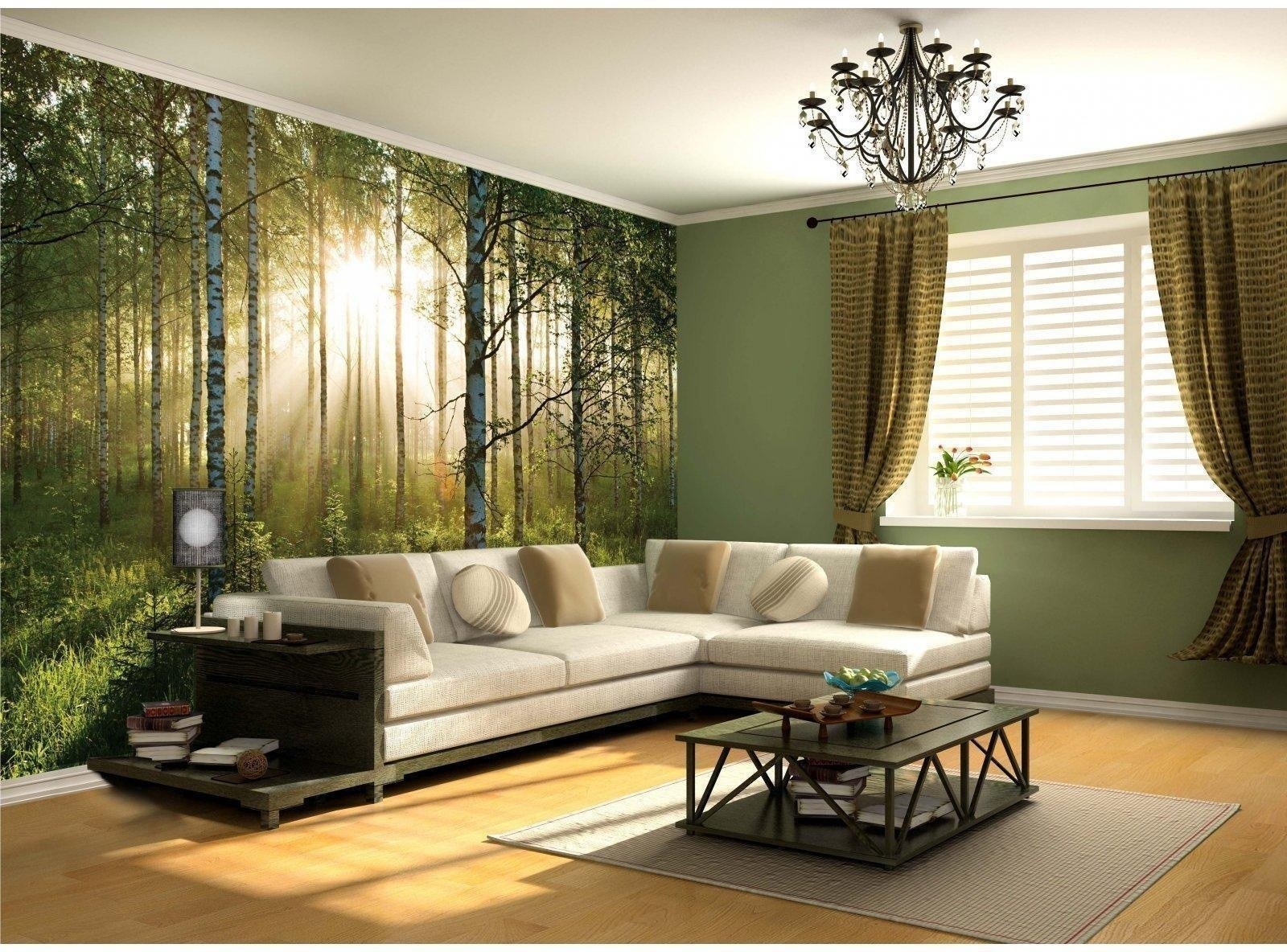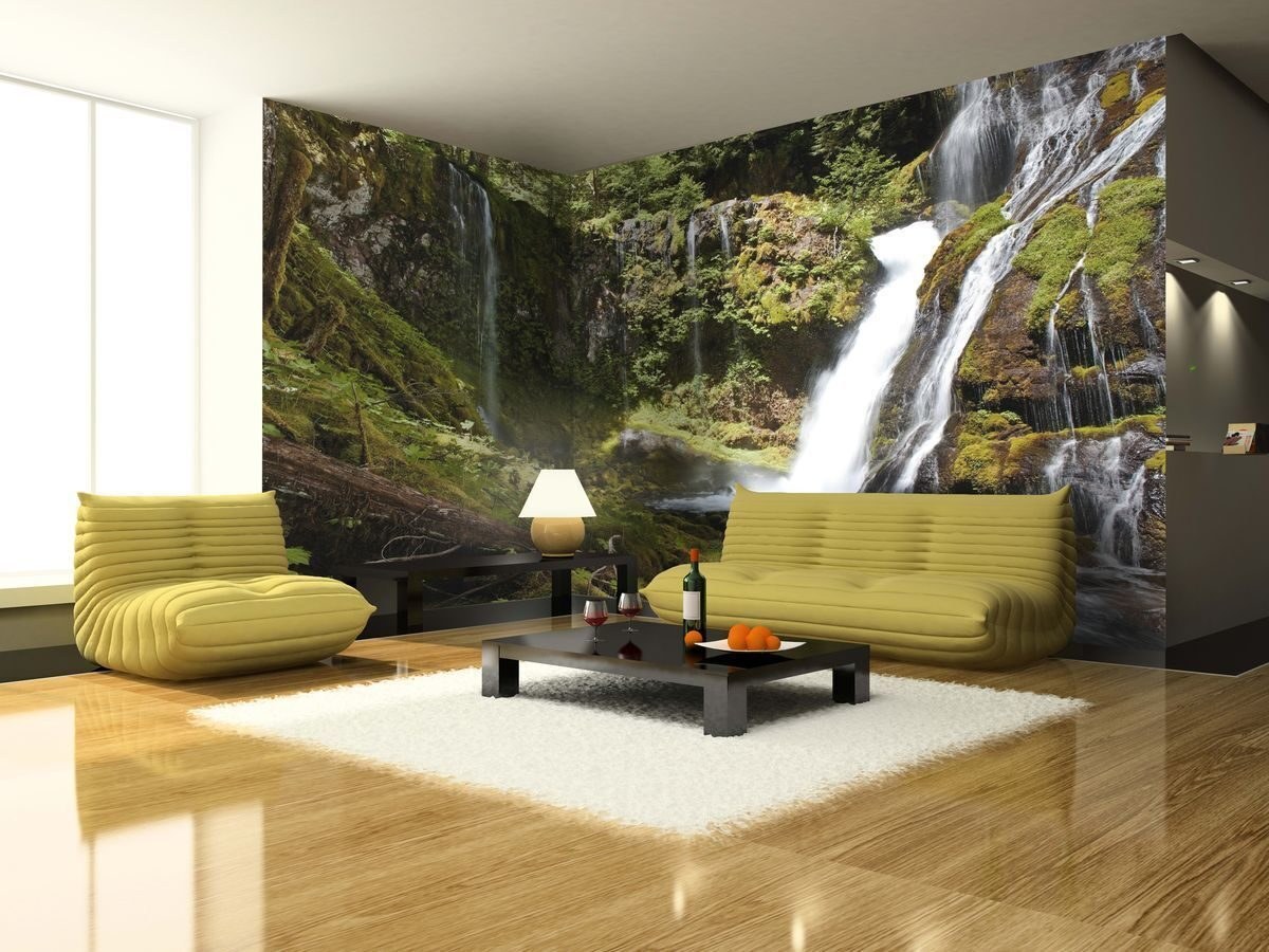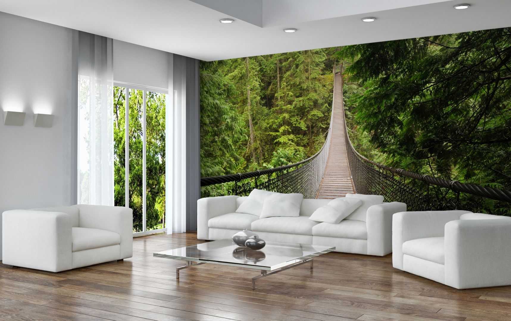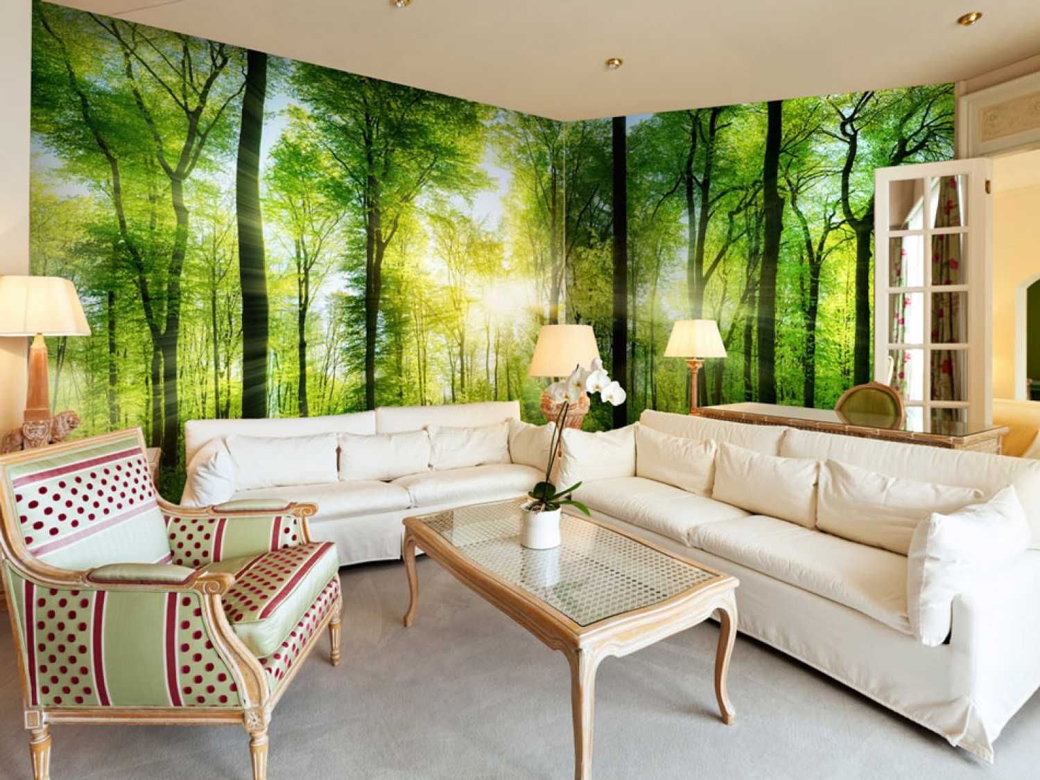 Фотообои природа в интерьере гостиной