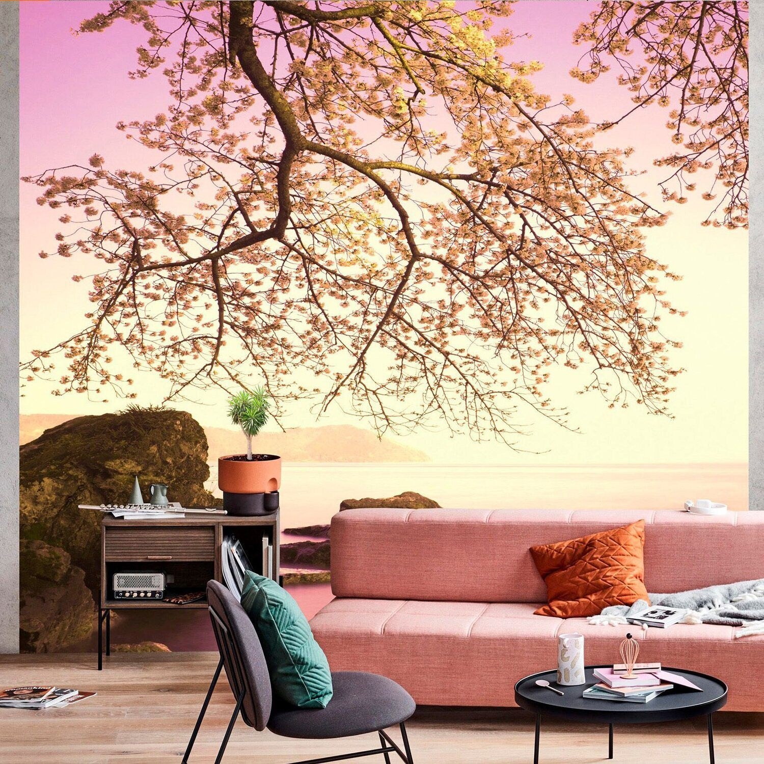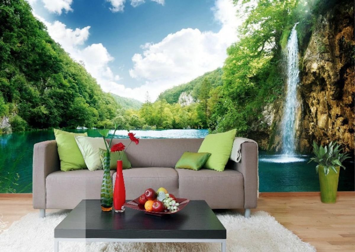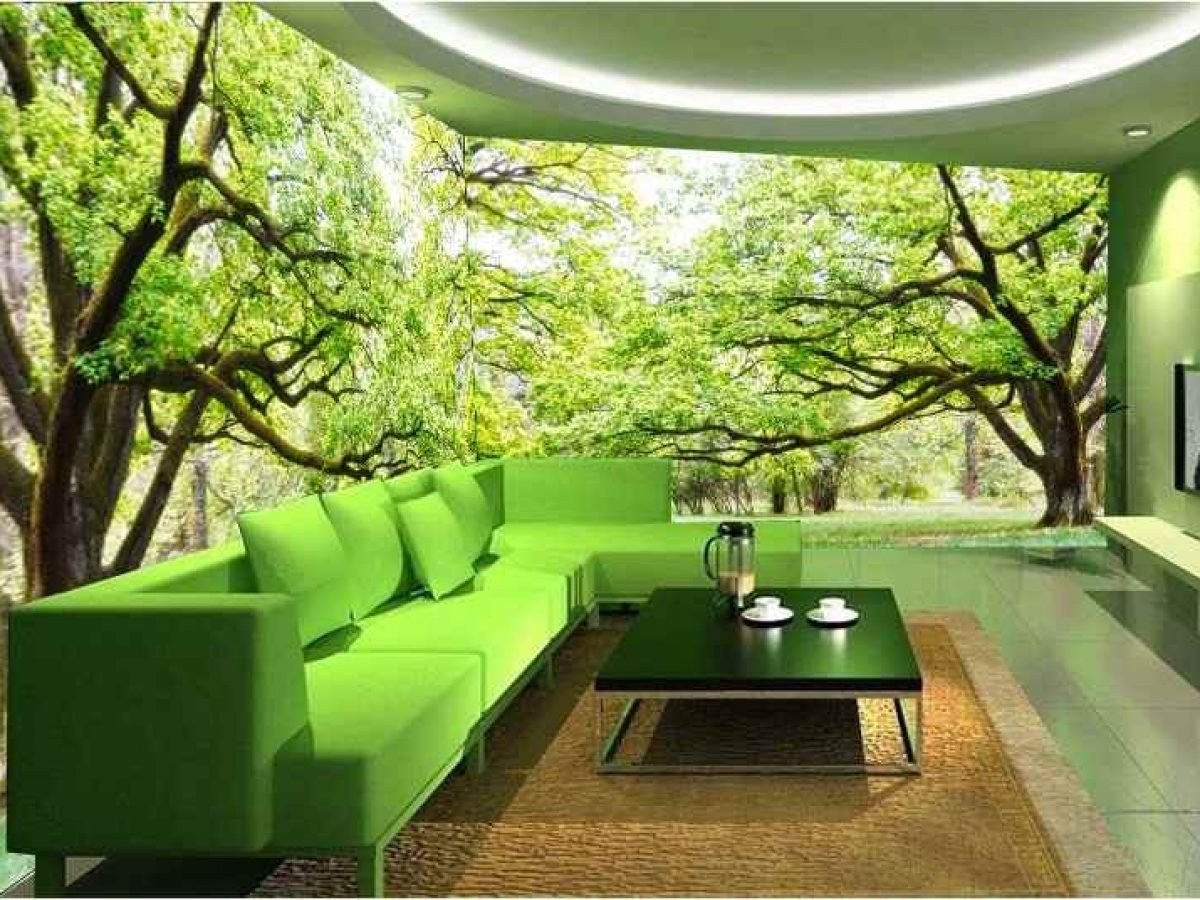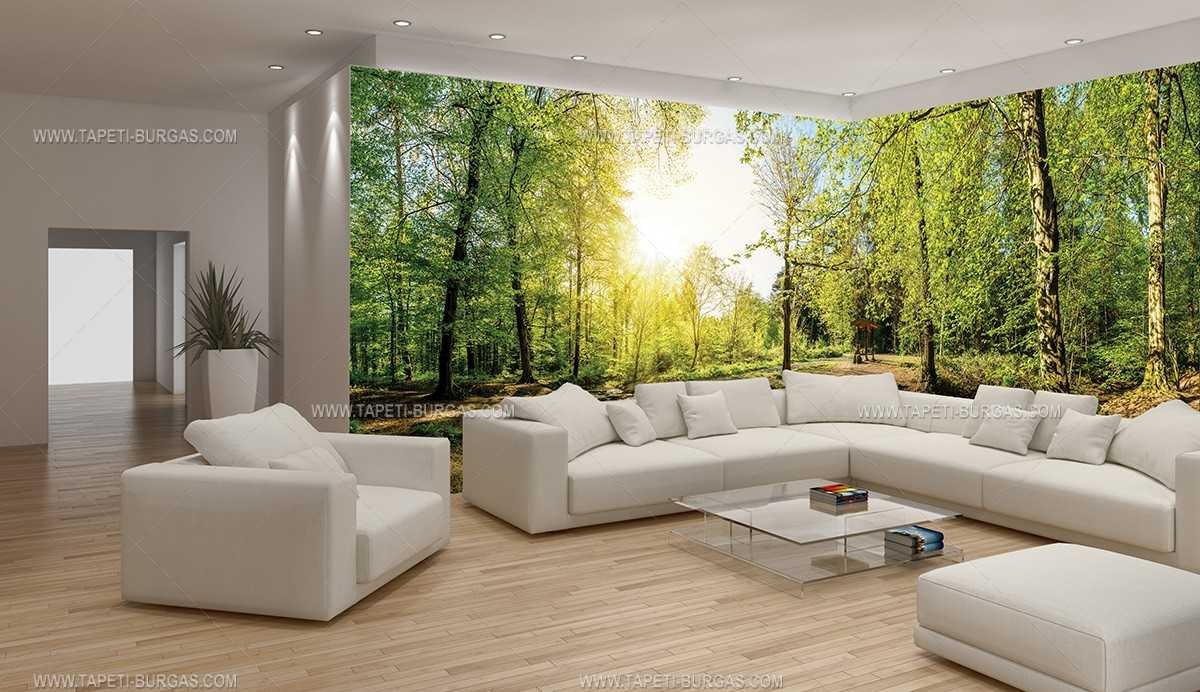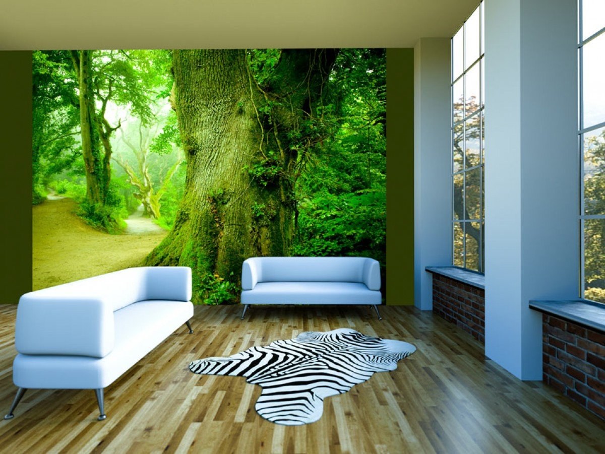 Фотообои природа в интерьере гостиной
