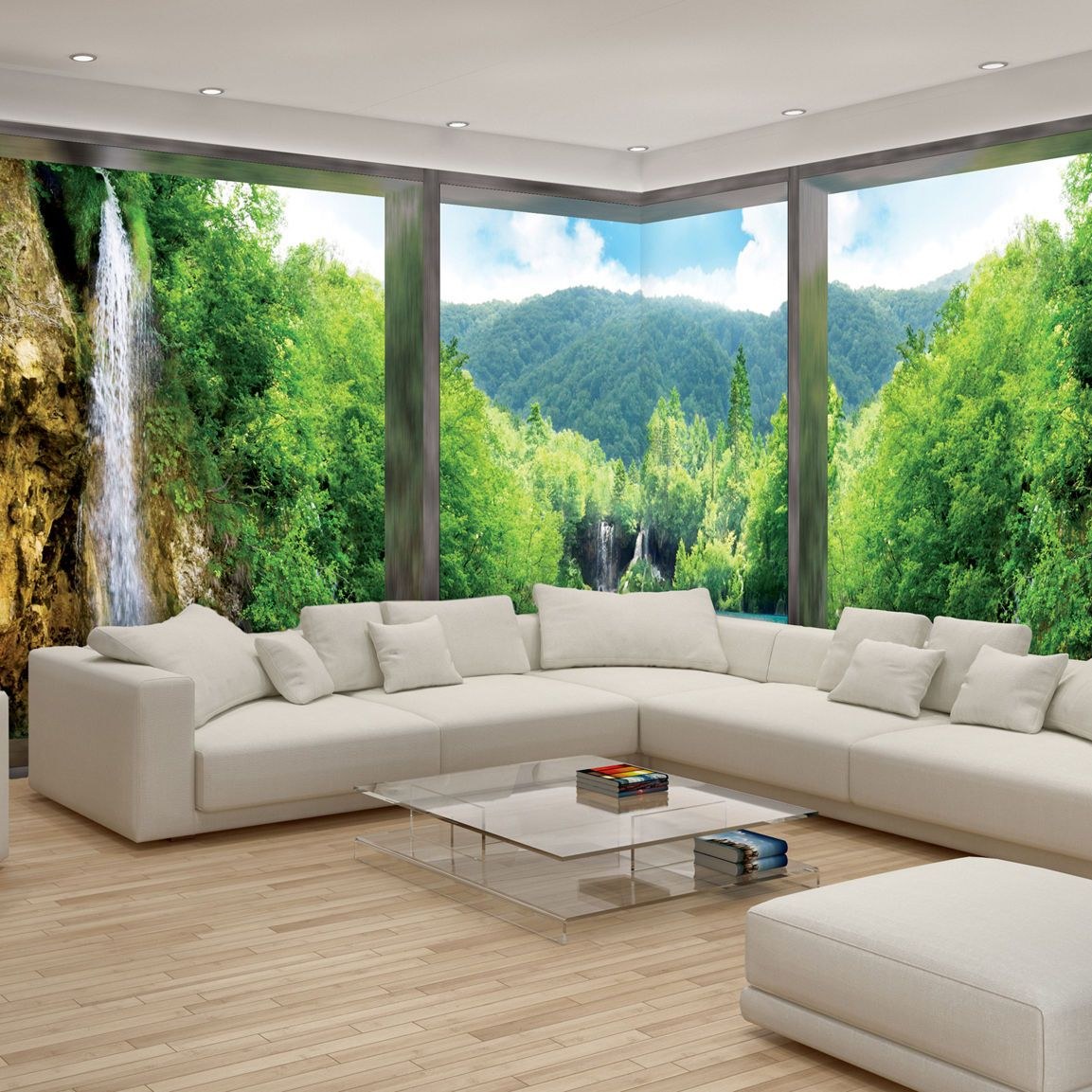 Угловые фотообои на стену в гостиную
