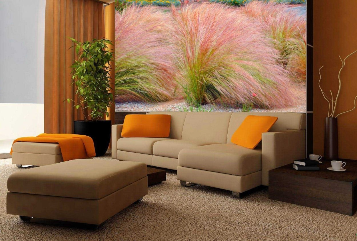 Фотообои в гостиную над диваном