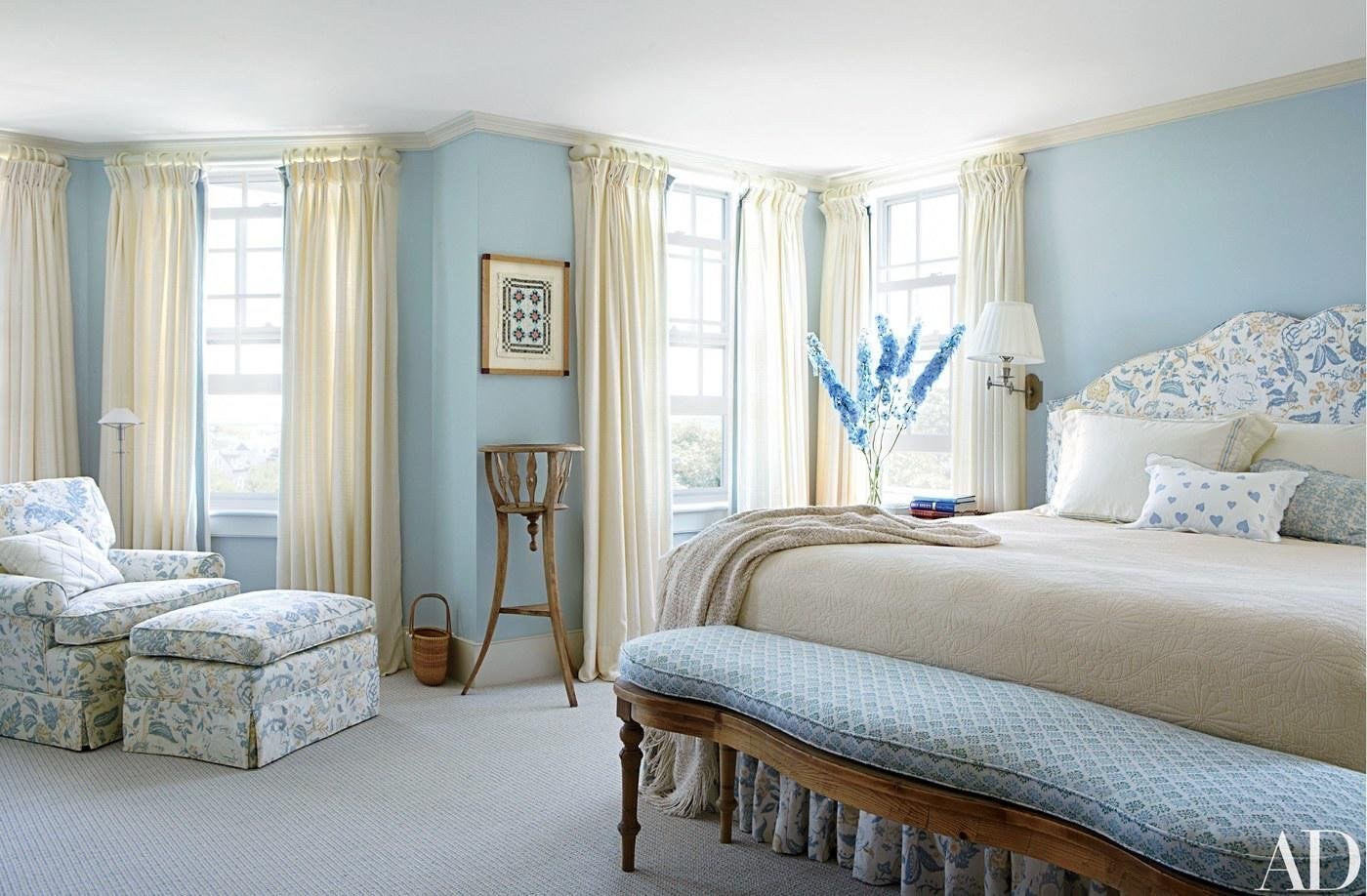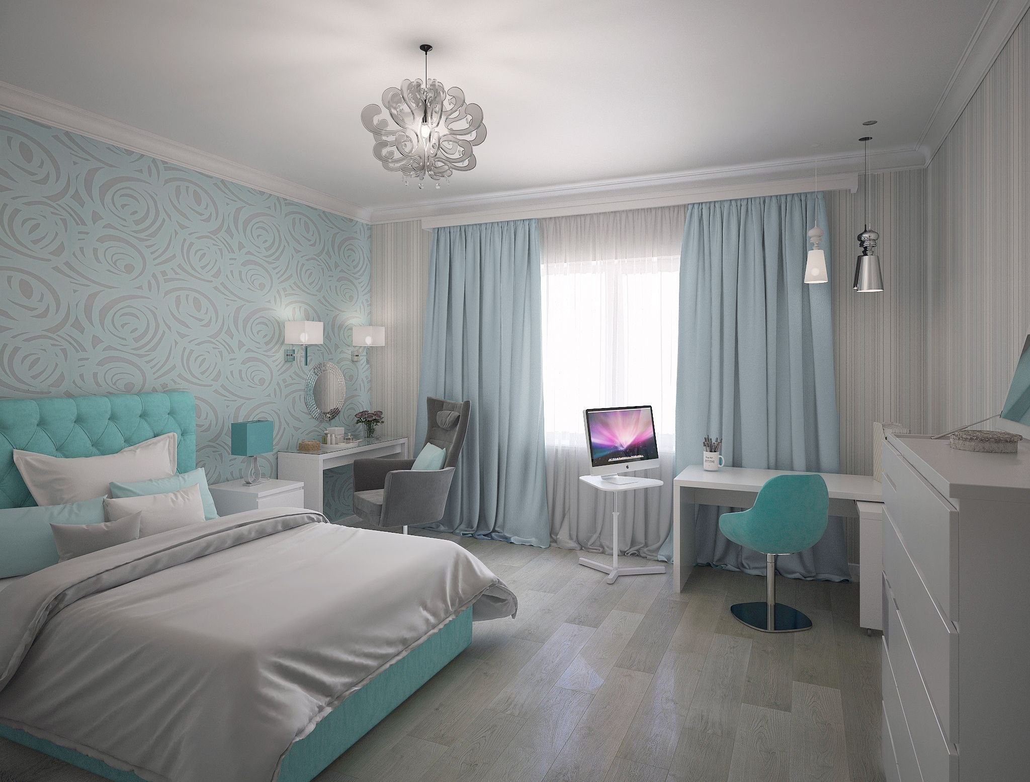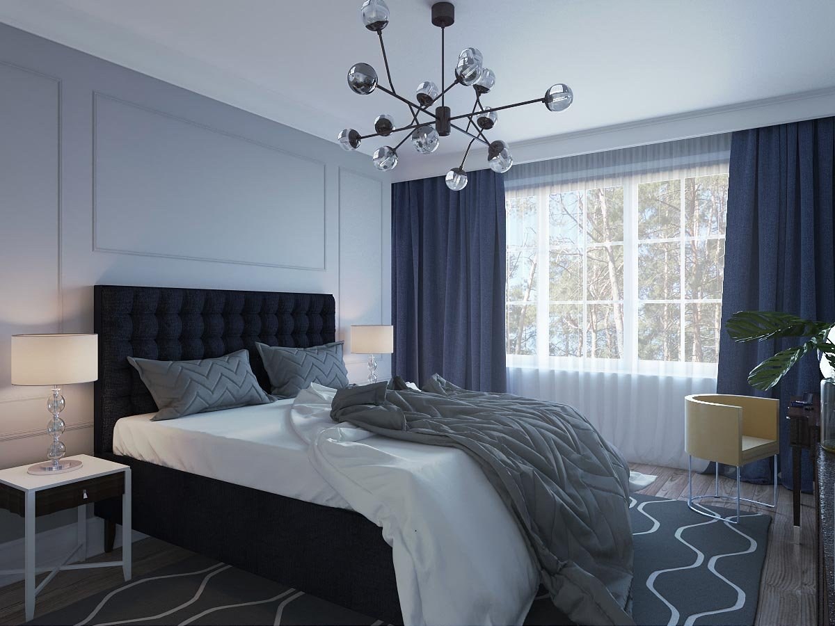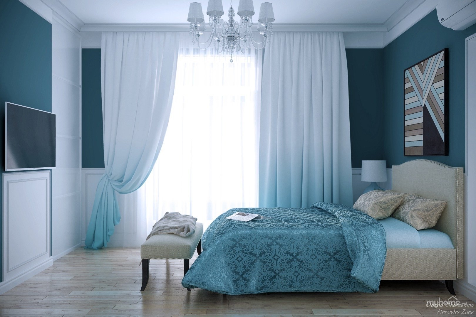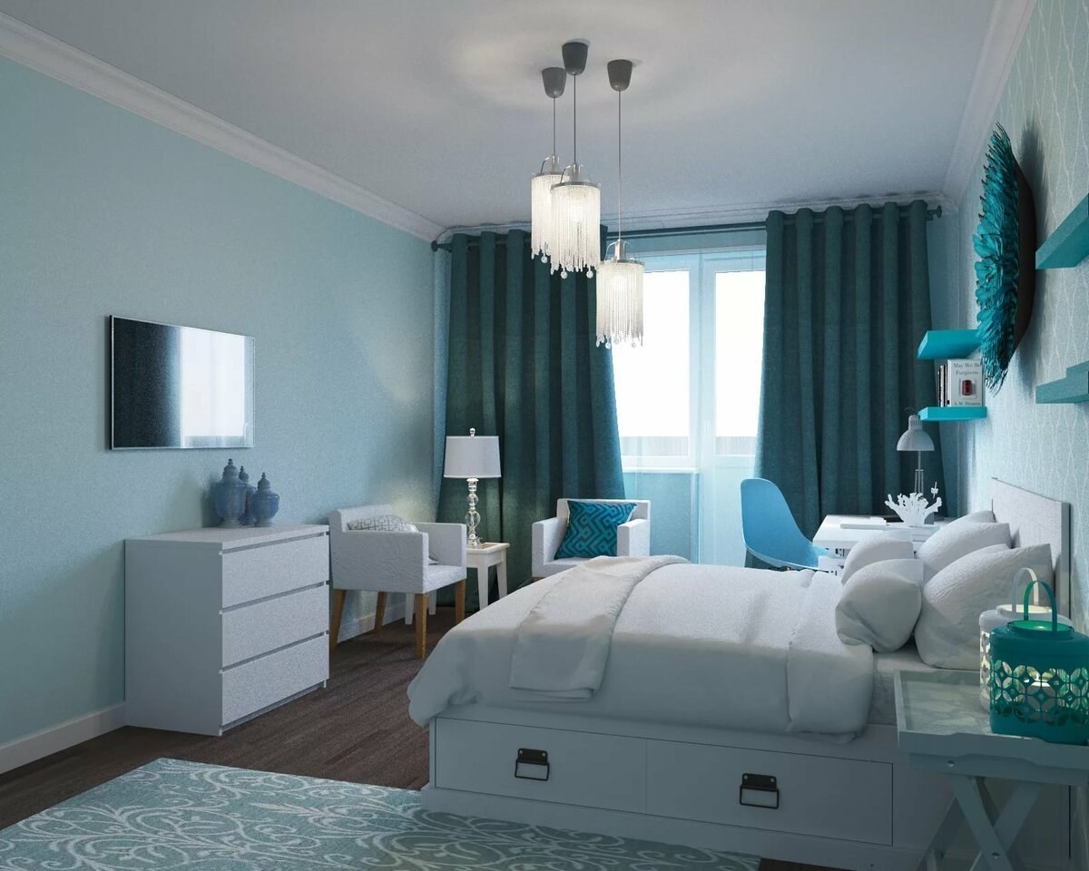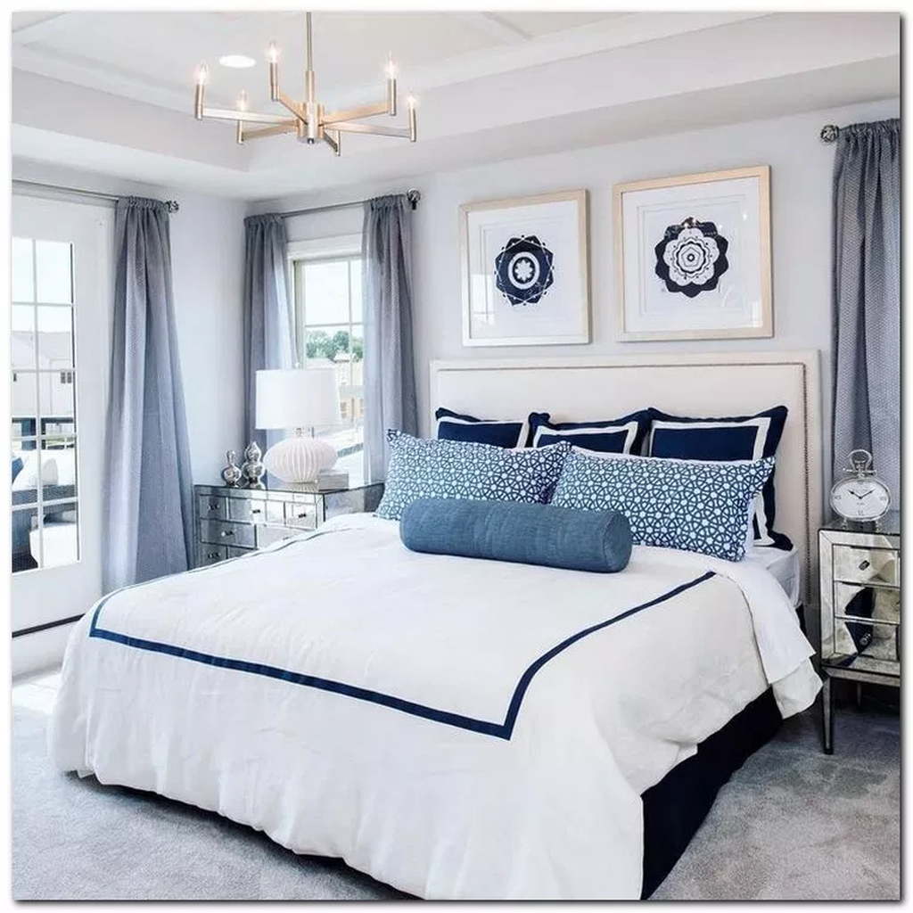 Спальня в серо голубых тонах с белой мебелью (58 фото)