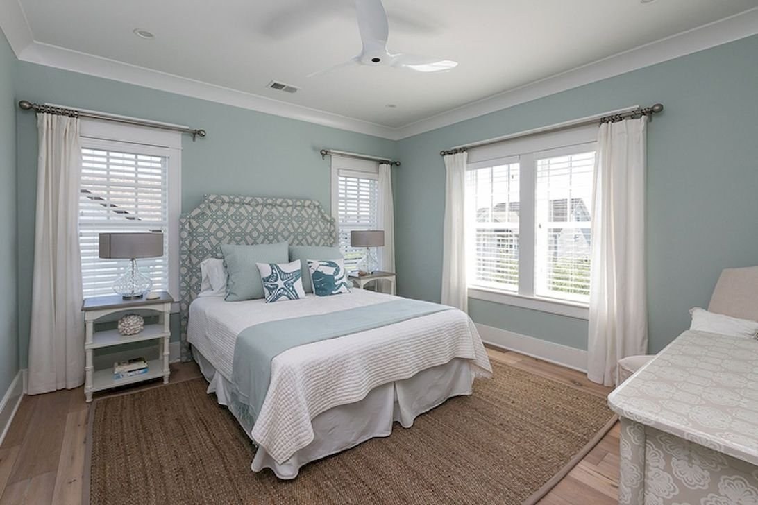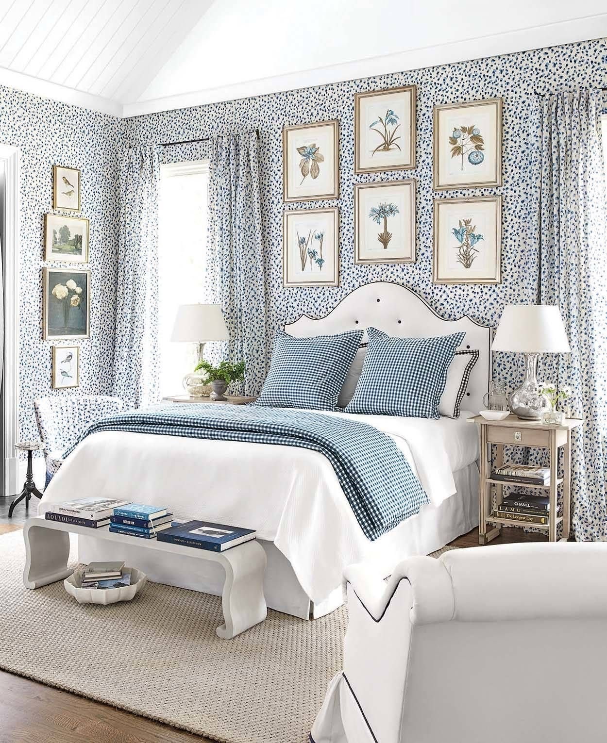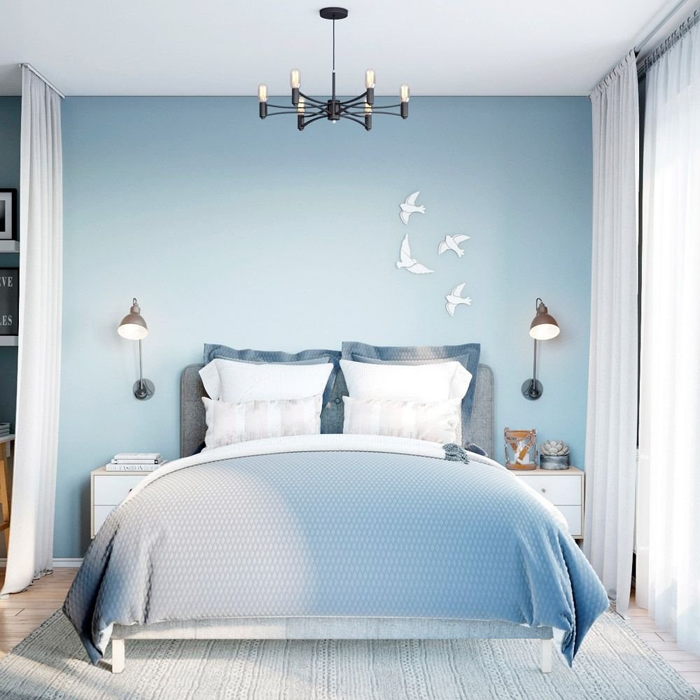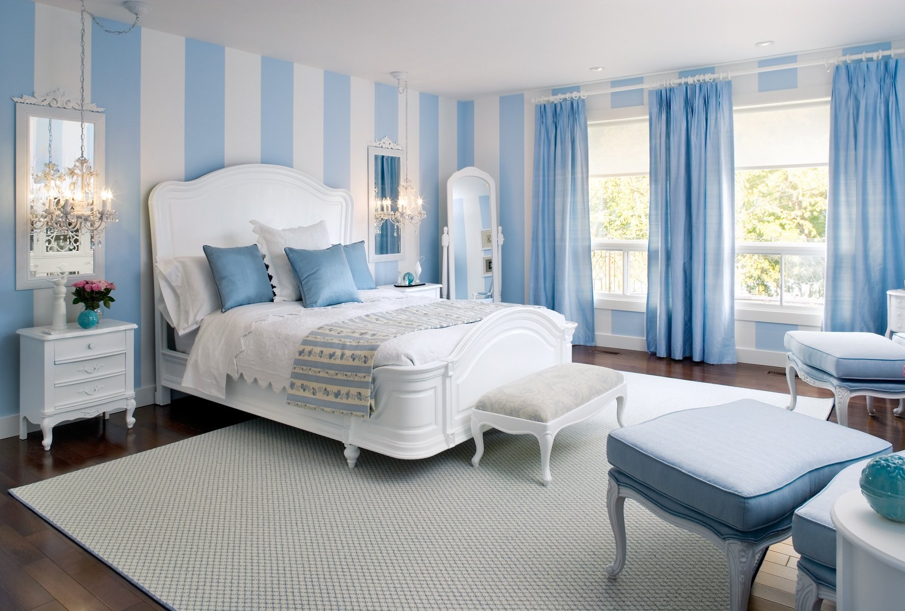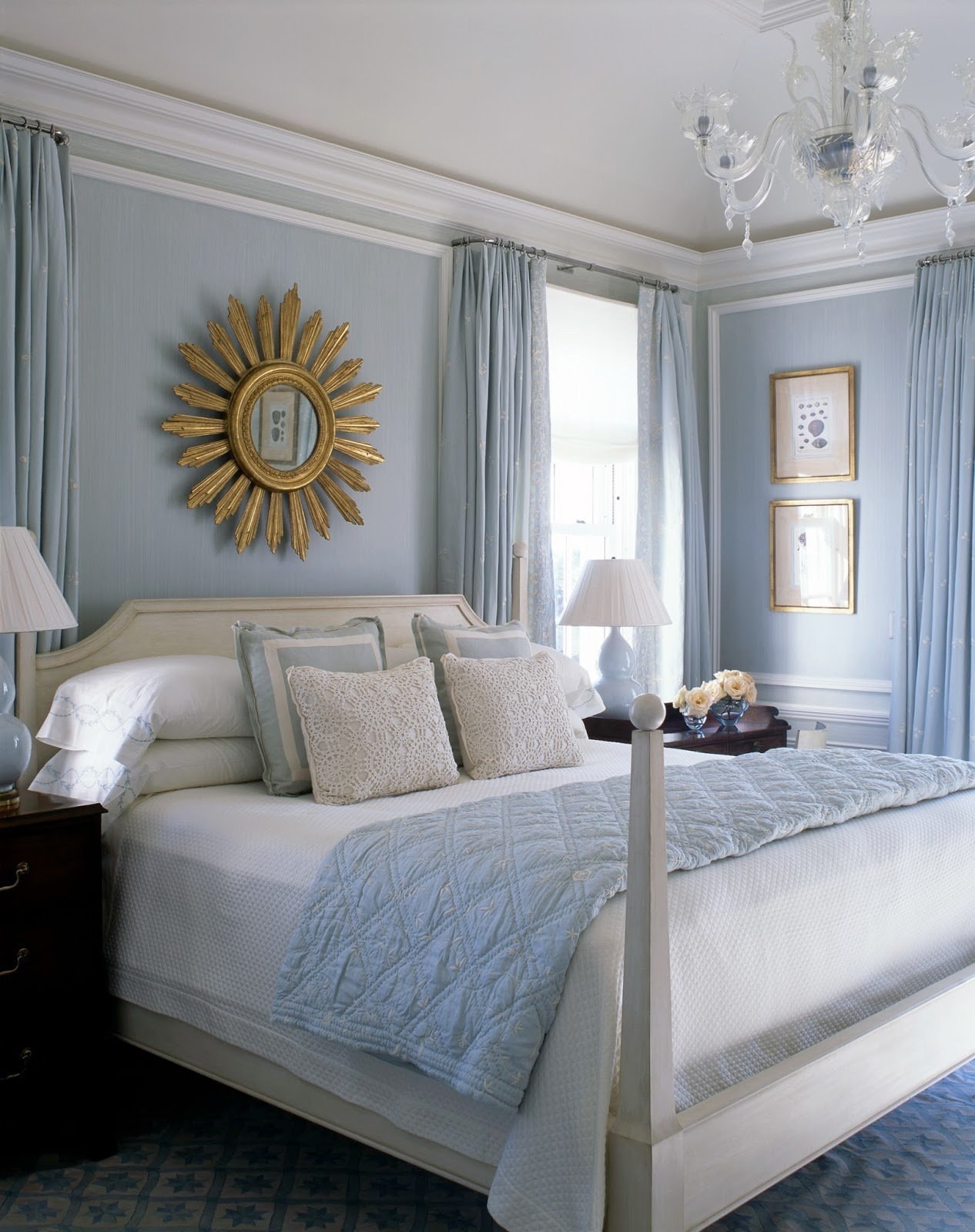 Спальня в серо голубых тонах с белой мебелью (58 фото)