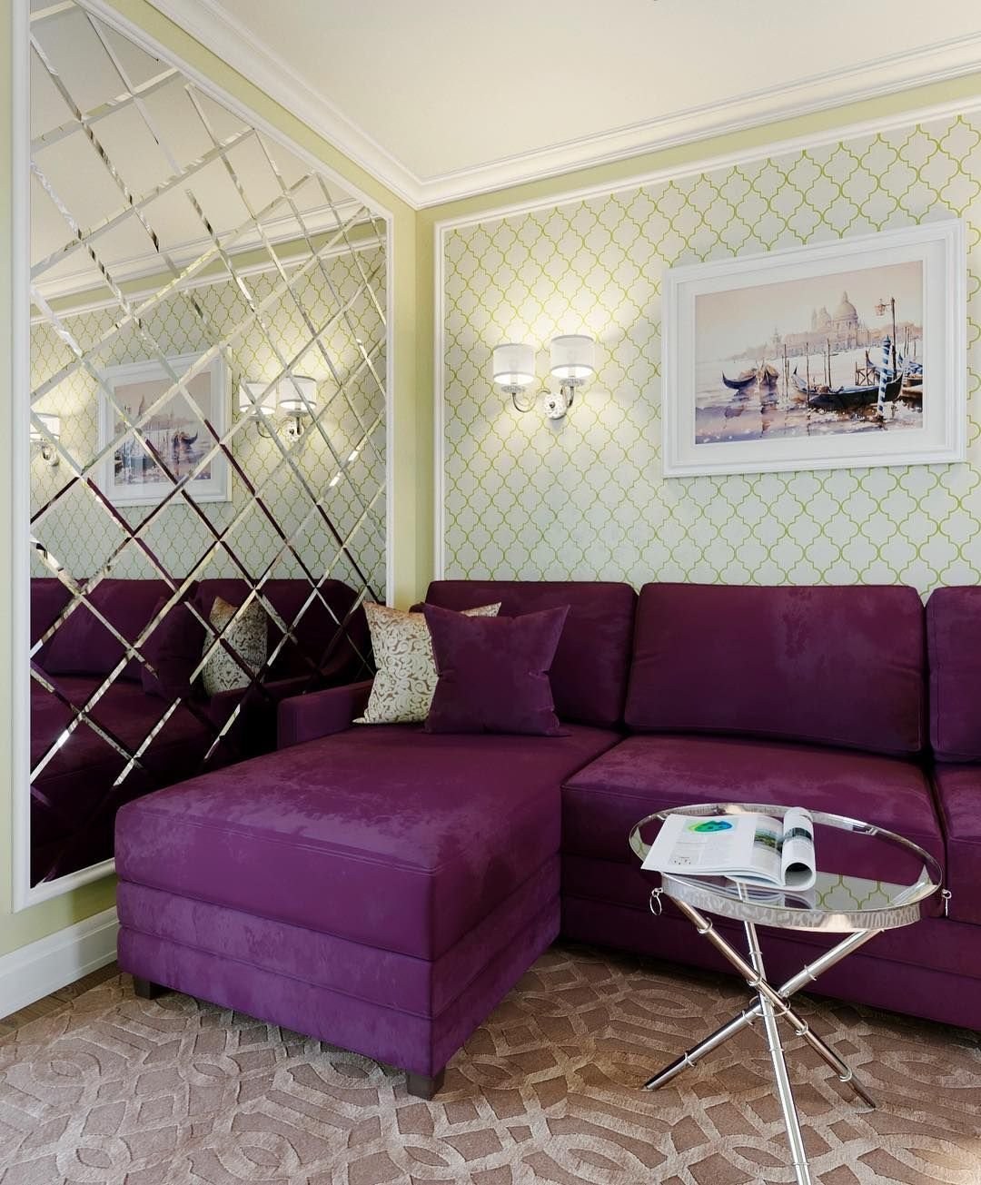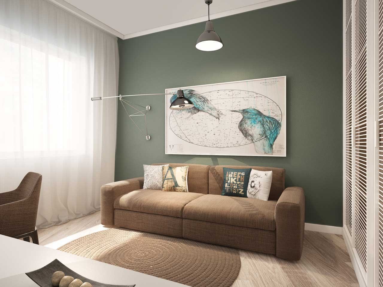 Зеленый диван в интерьере