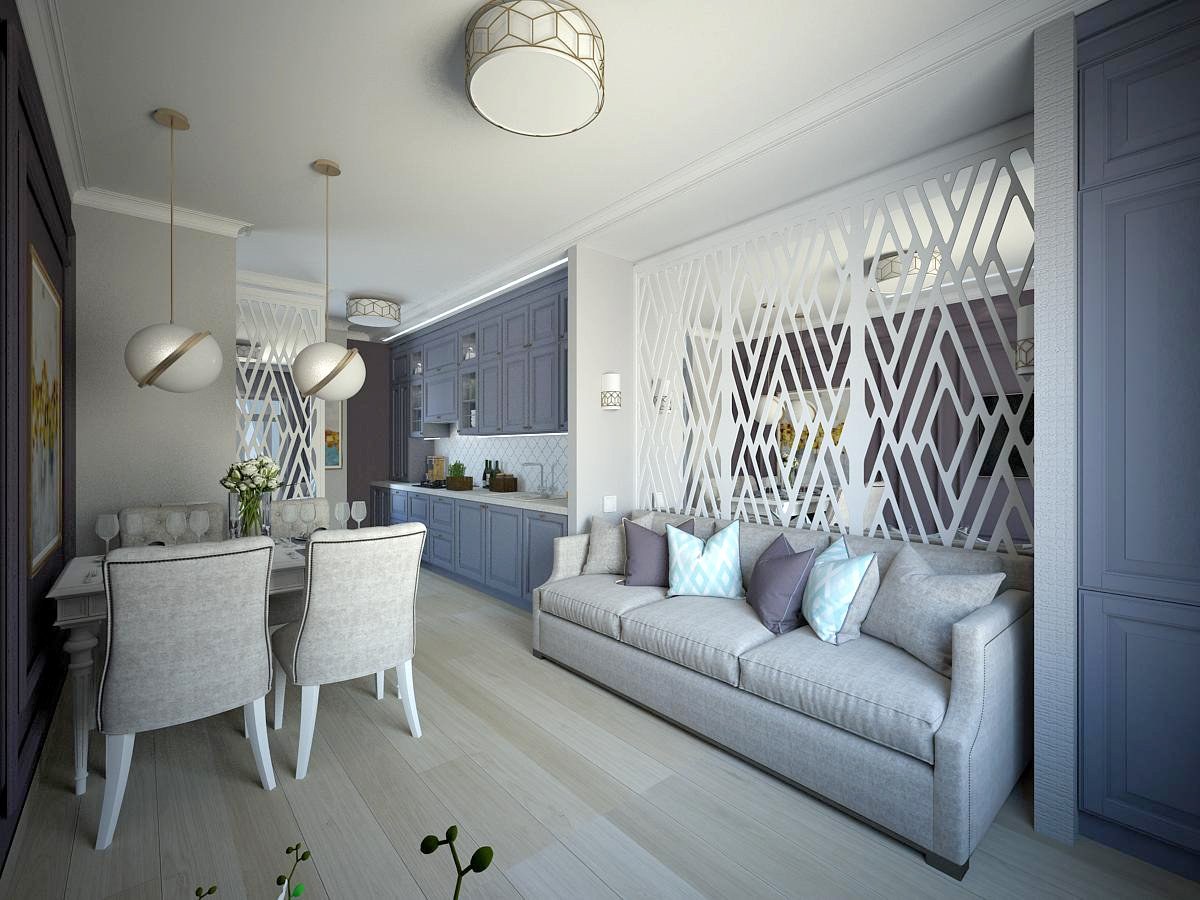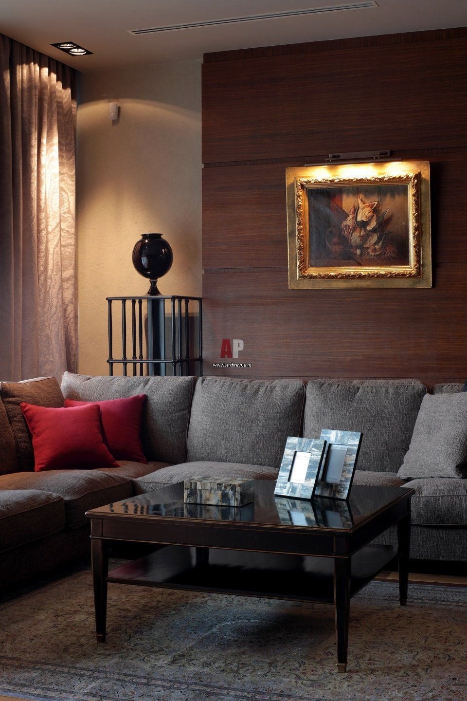 Гостиная с серыми обоями