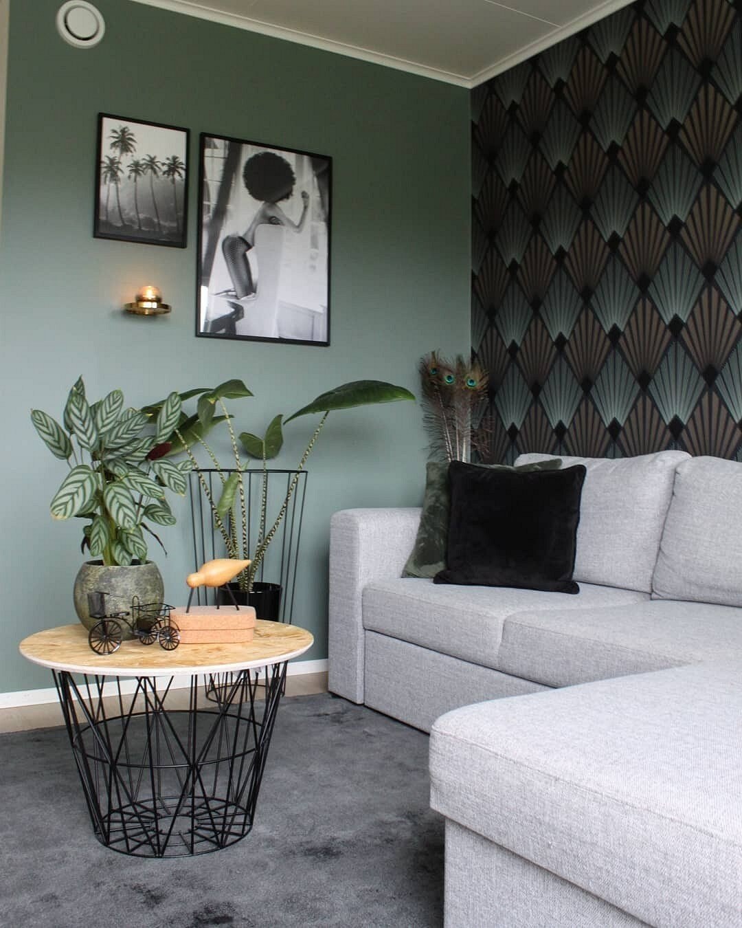 Гостиная с зелеными стенами