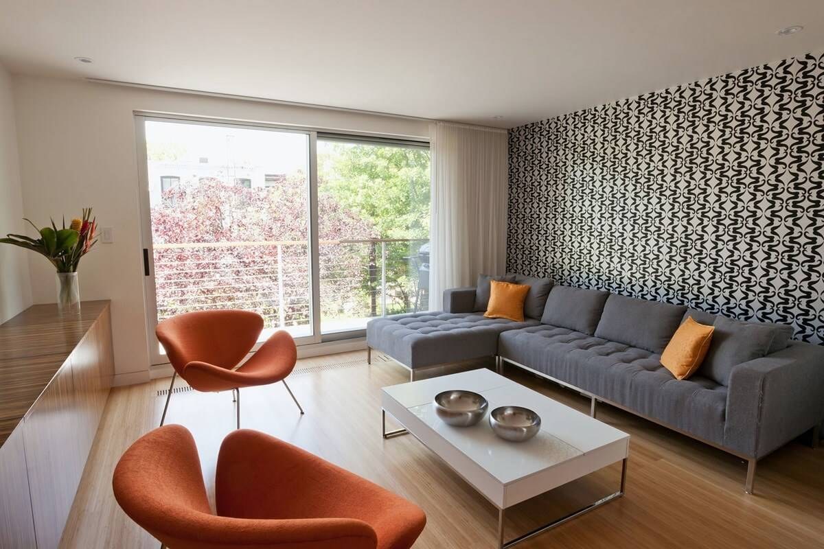 Акцентная стена в гостиной за диваном (64 фото)