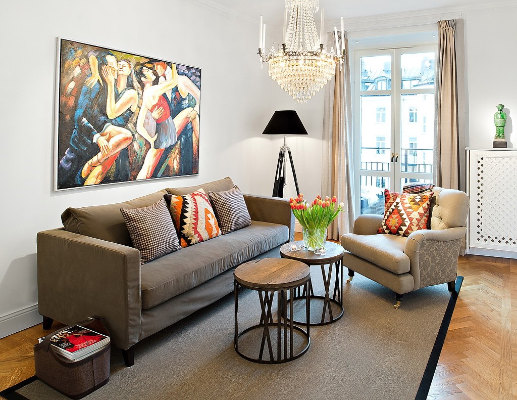 Декор стены в гостиной над диваном