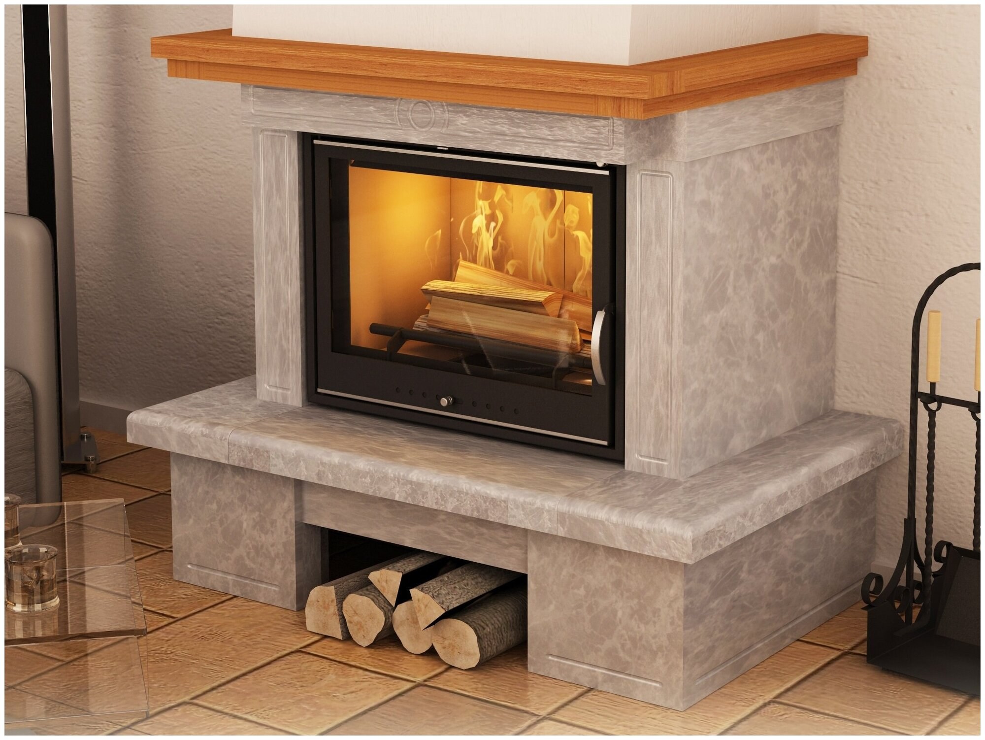 Отделка камина керамогранитом