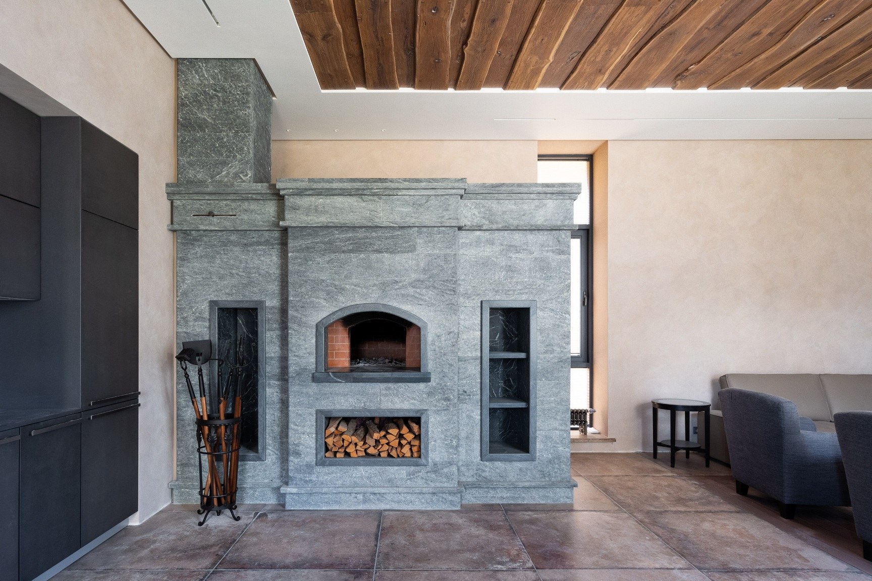 Камин из керамогранита с чем сочетается (60 фото)