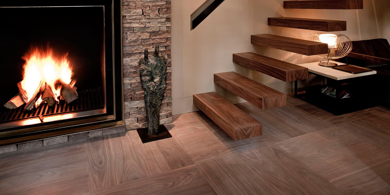 Керамогранит под дерево в гостиной