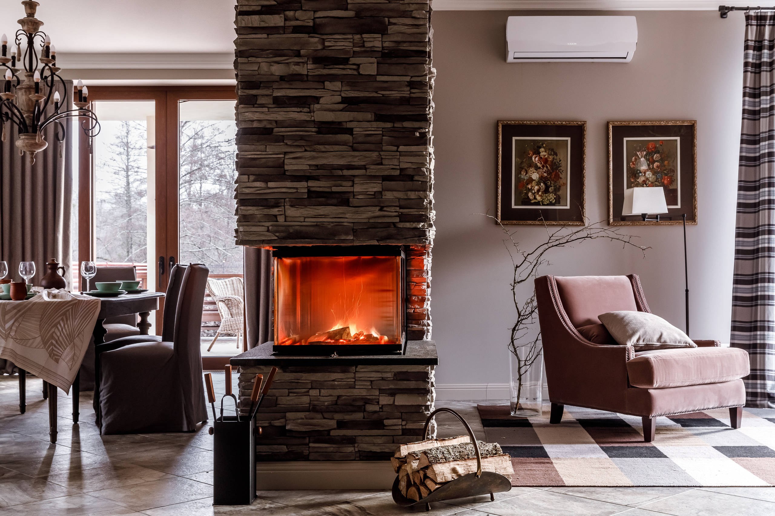 Каменный камин в интерьере