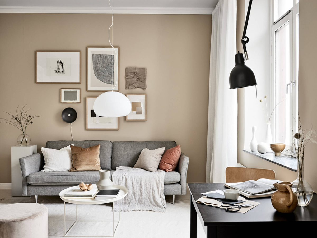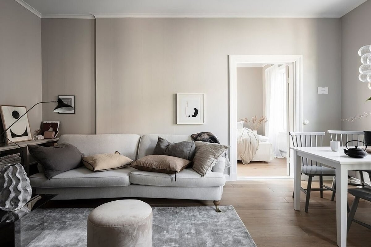 Цвет стен серо бежевый в интерьере (62 фото)