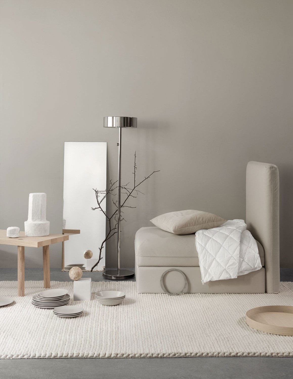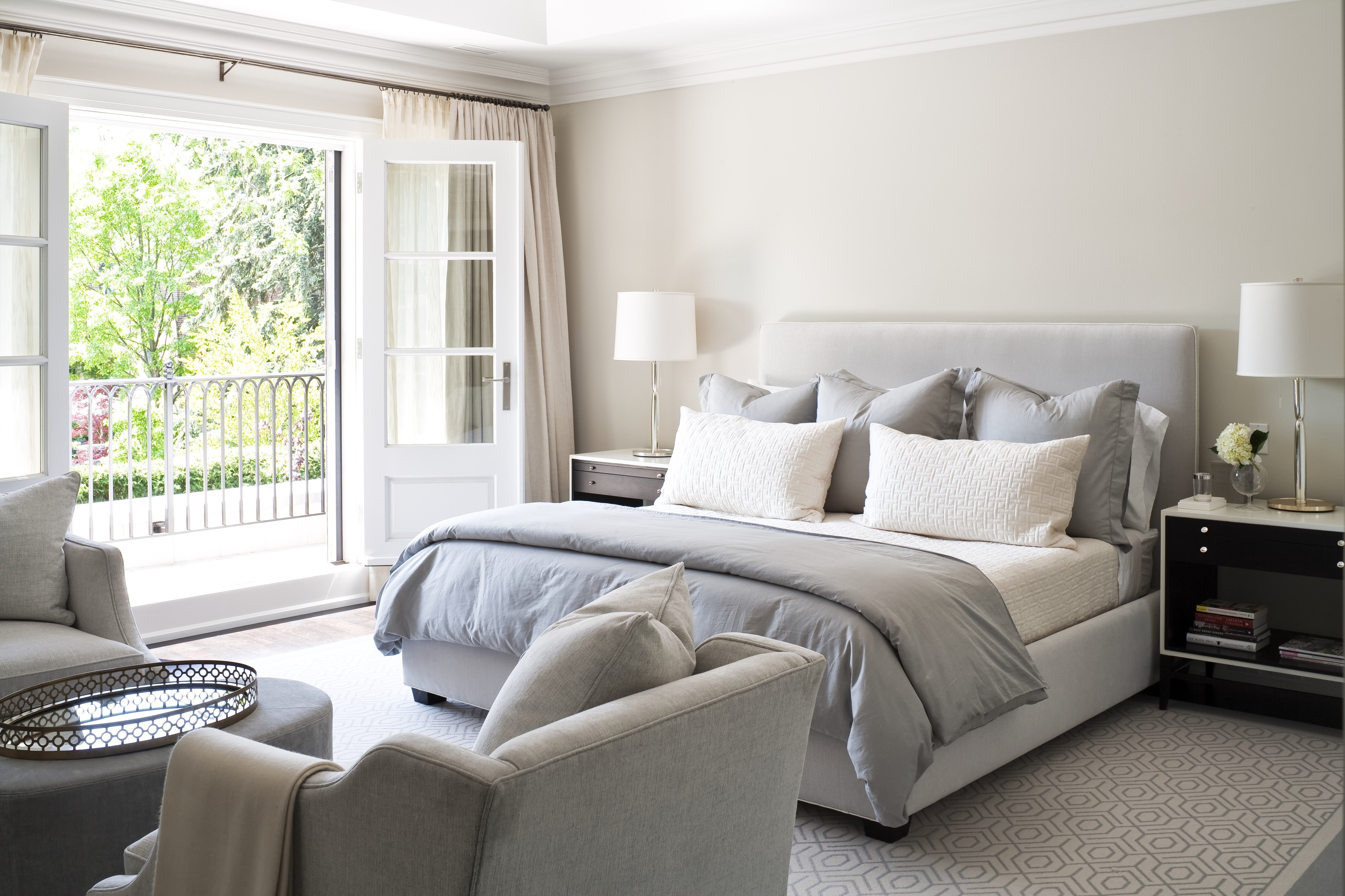 Светло серая кровать в интерьере