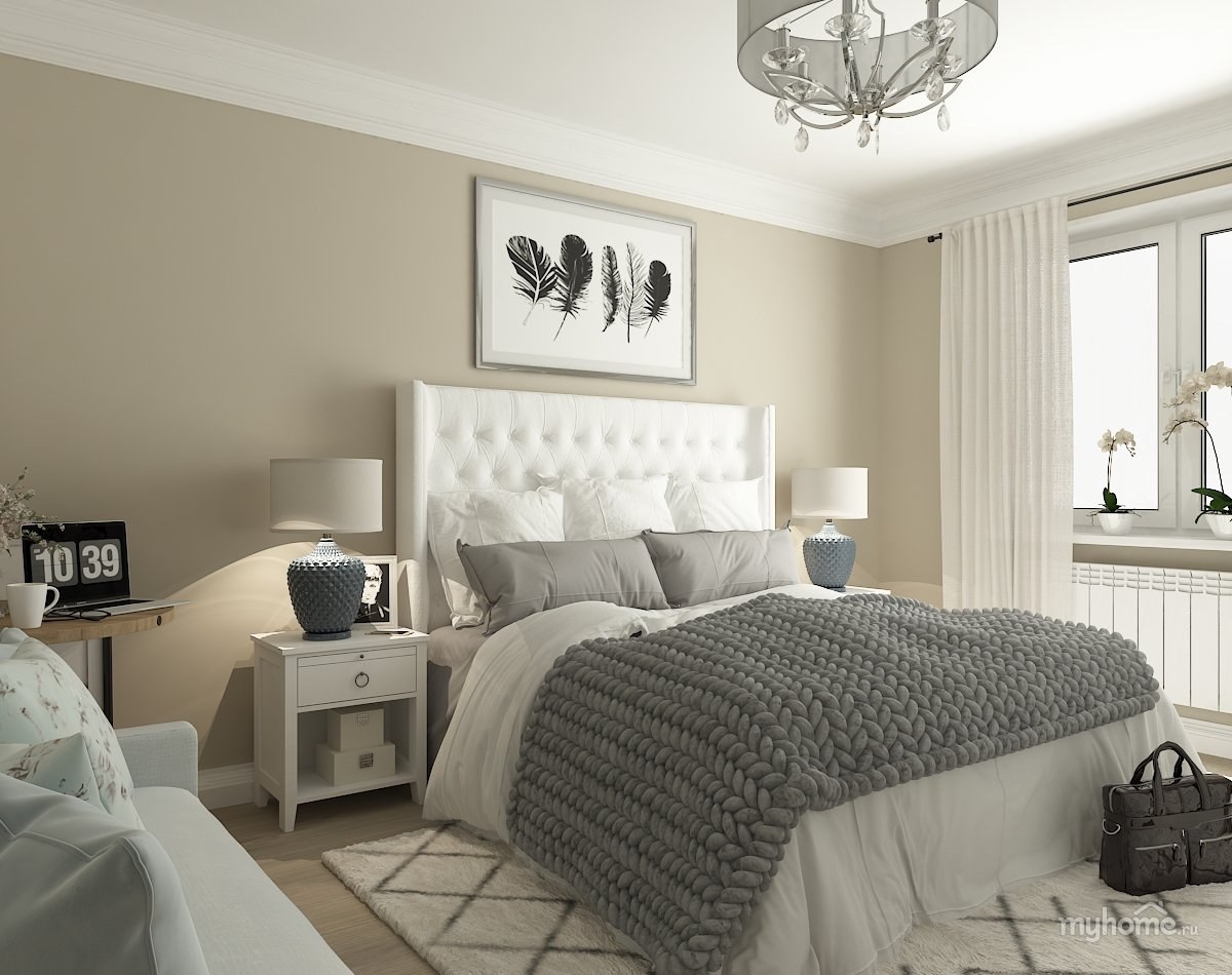 Бежево серая спальня
