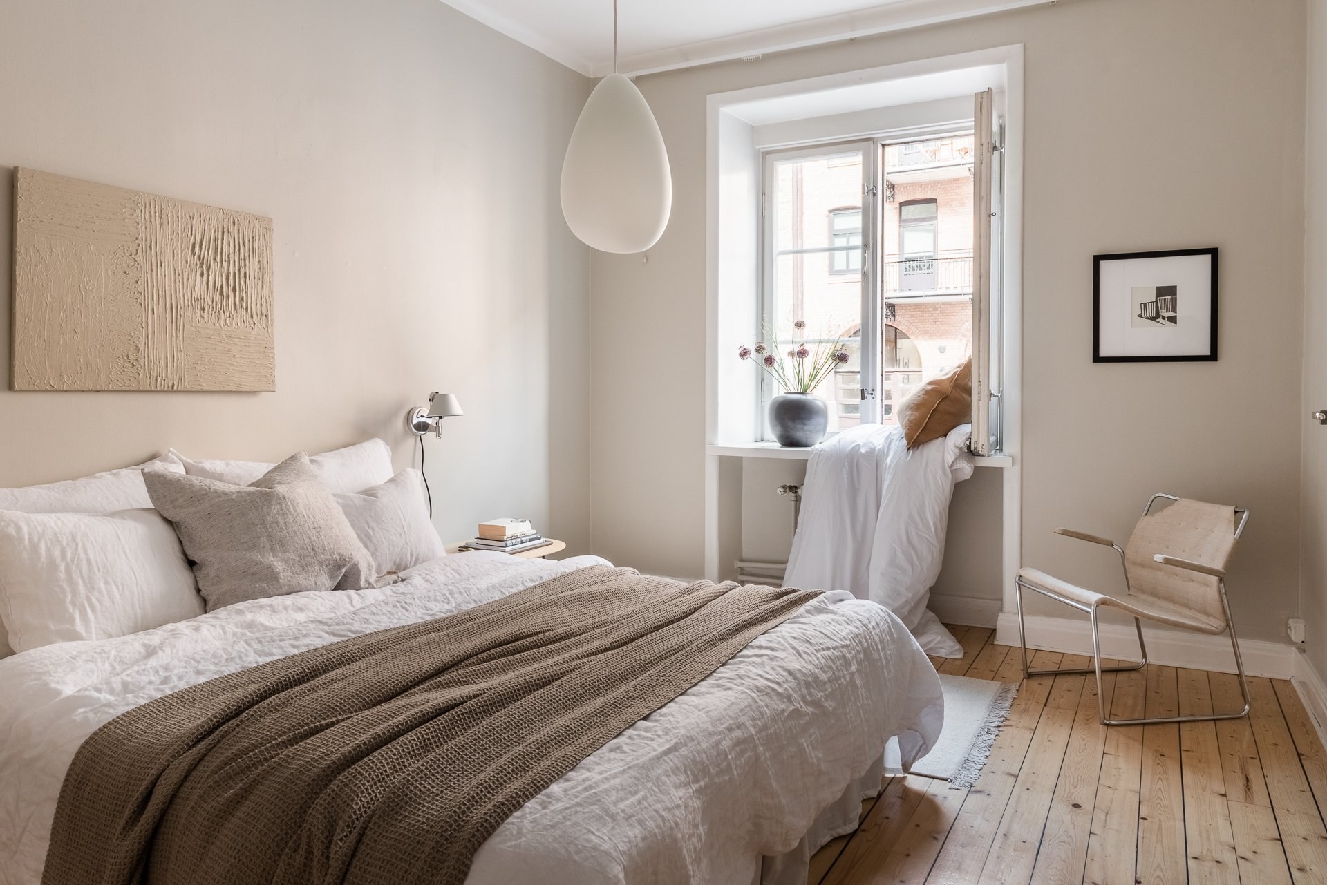 Ярко бежевый тон спальни