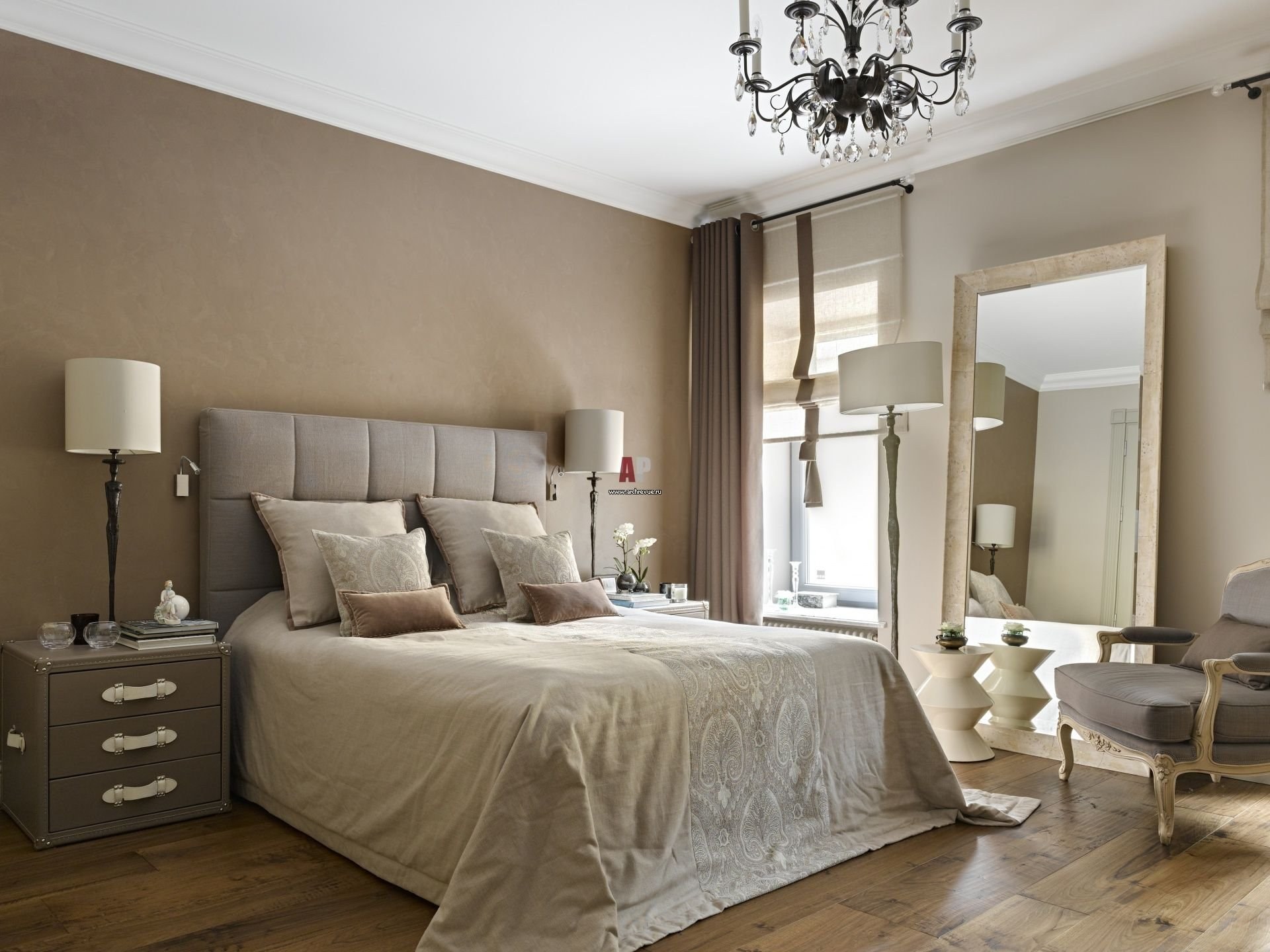 Бежево коричневая спальня