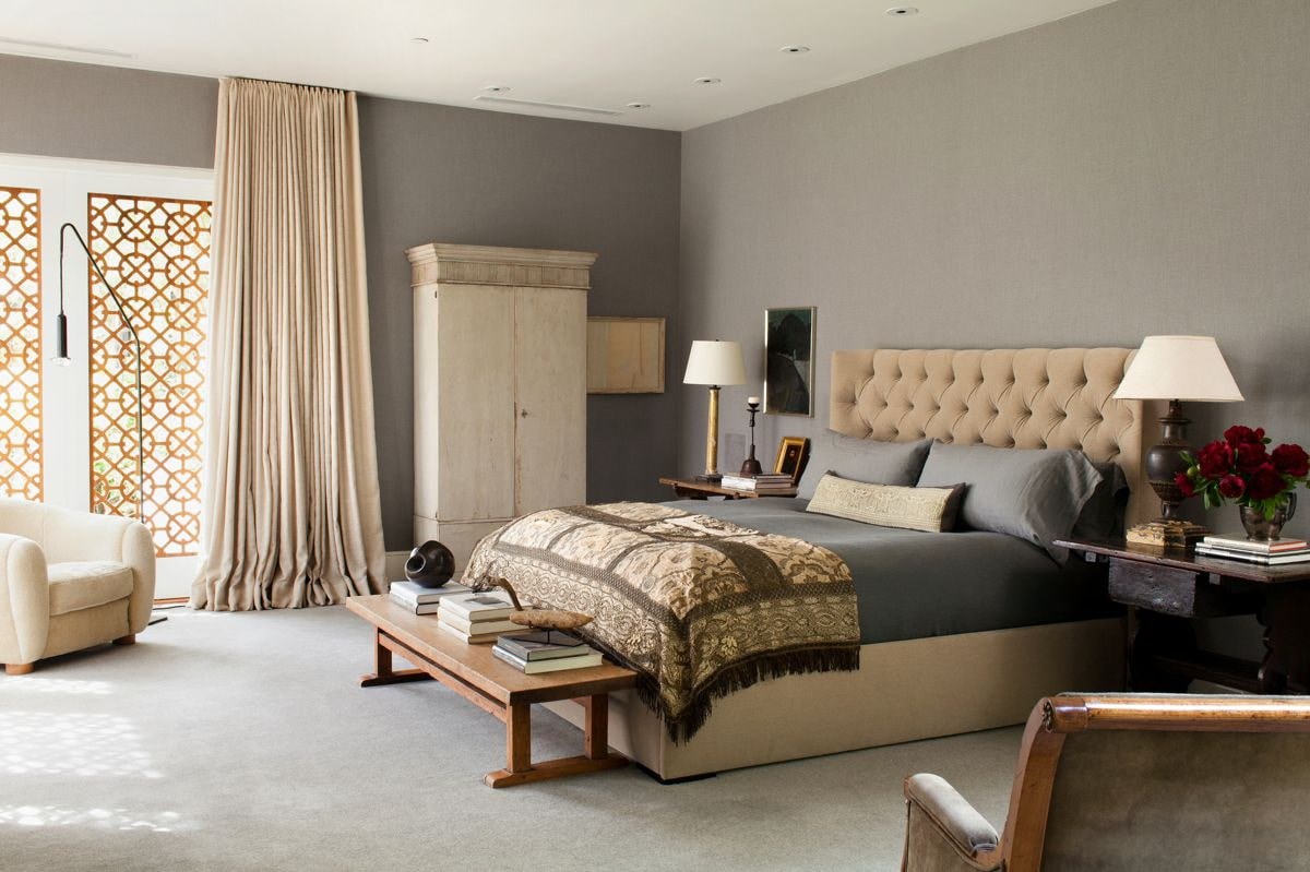 Бежевые стены в спальне
