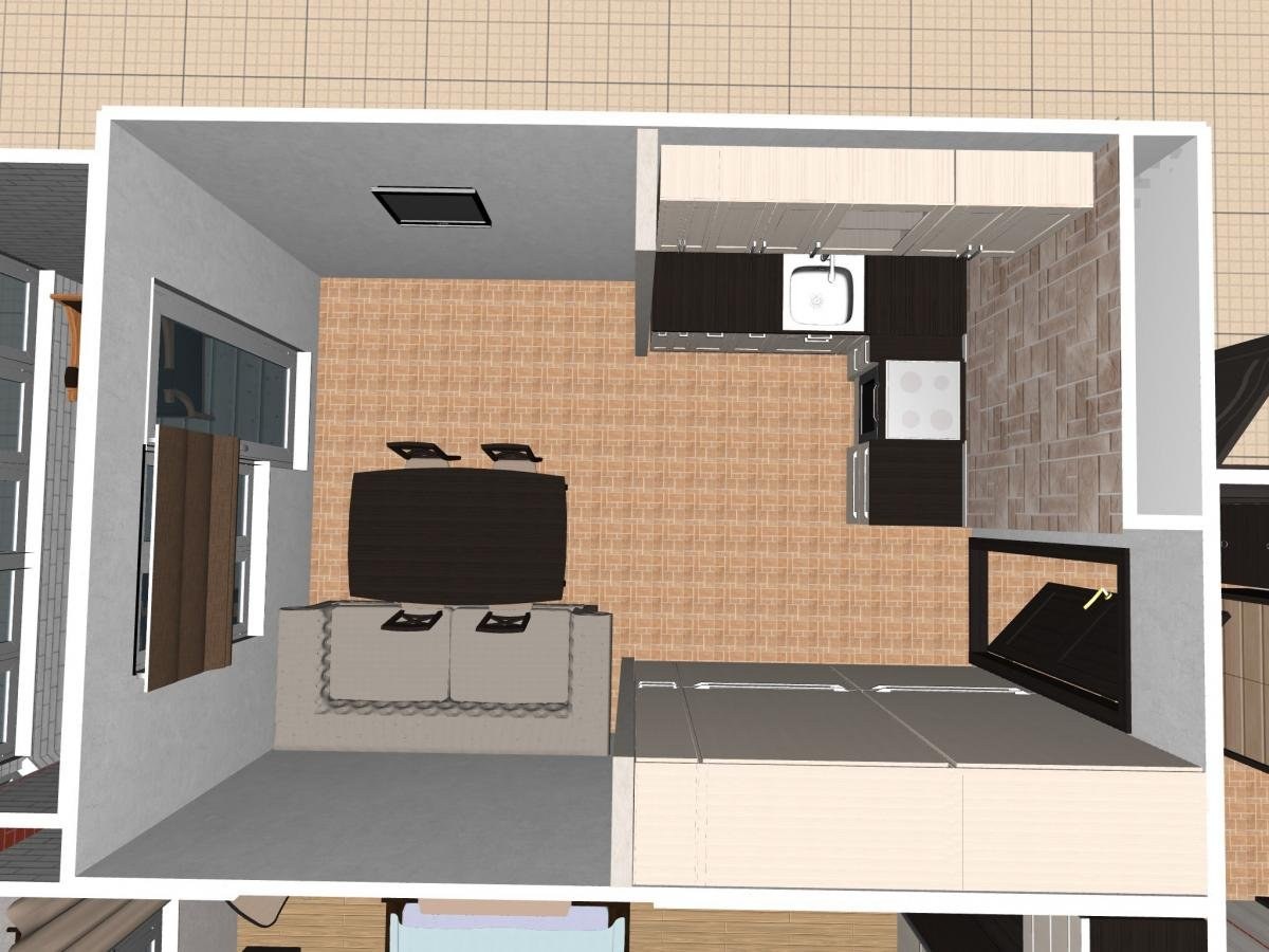 Расстановка мебели в кухне гостиной 4=7 м