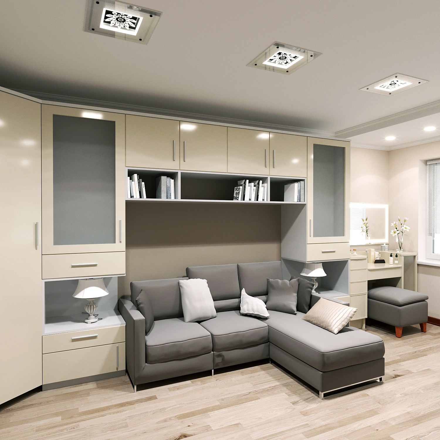 Квадратная гостиная 17м2 интерьер