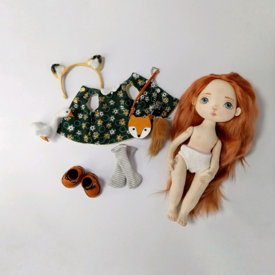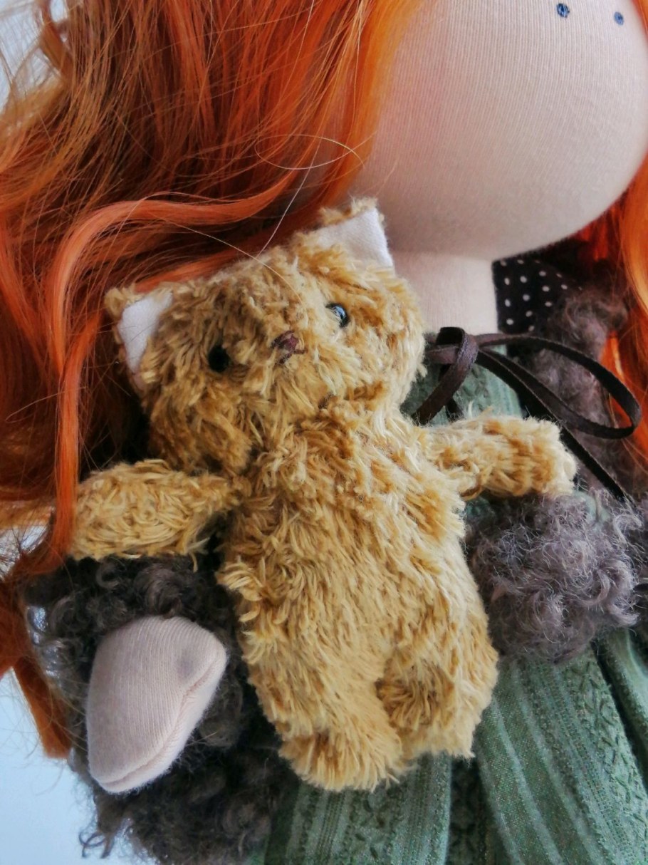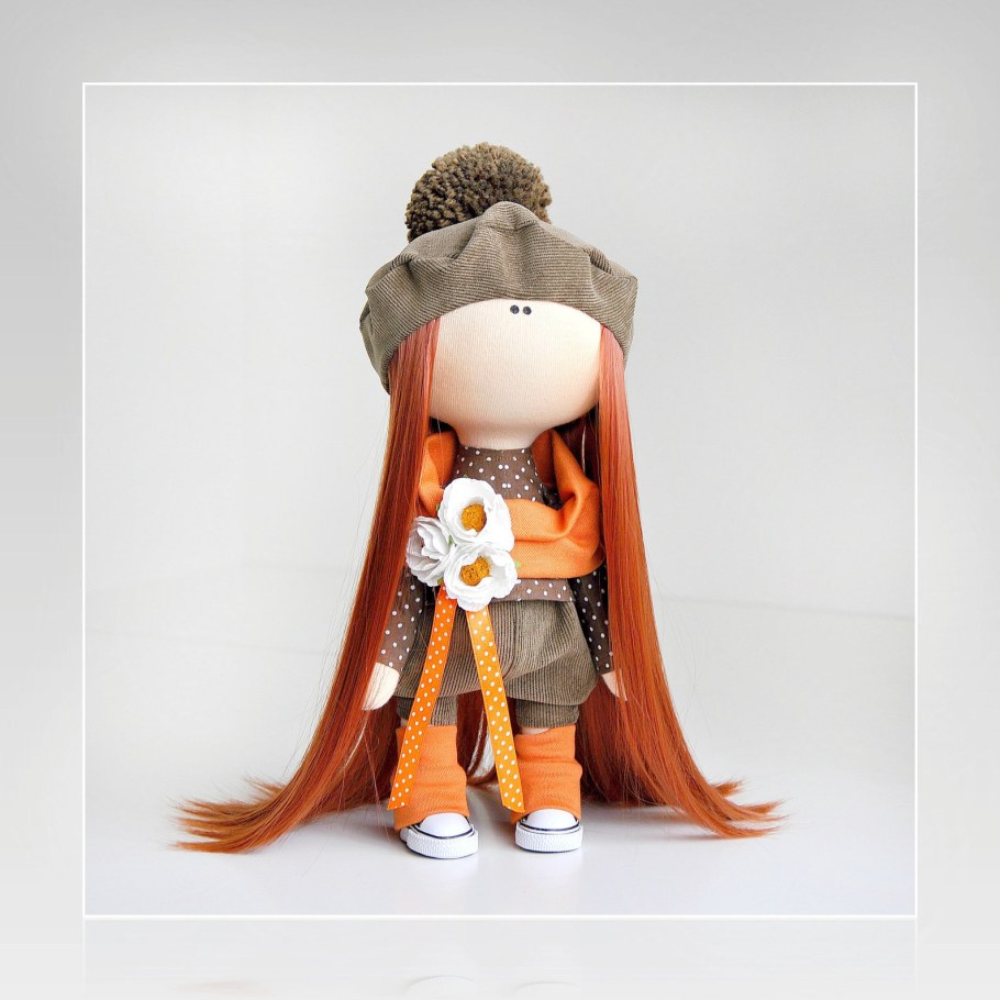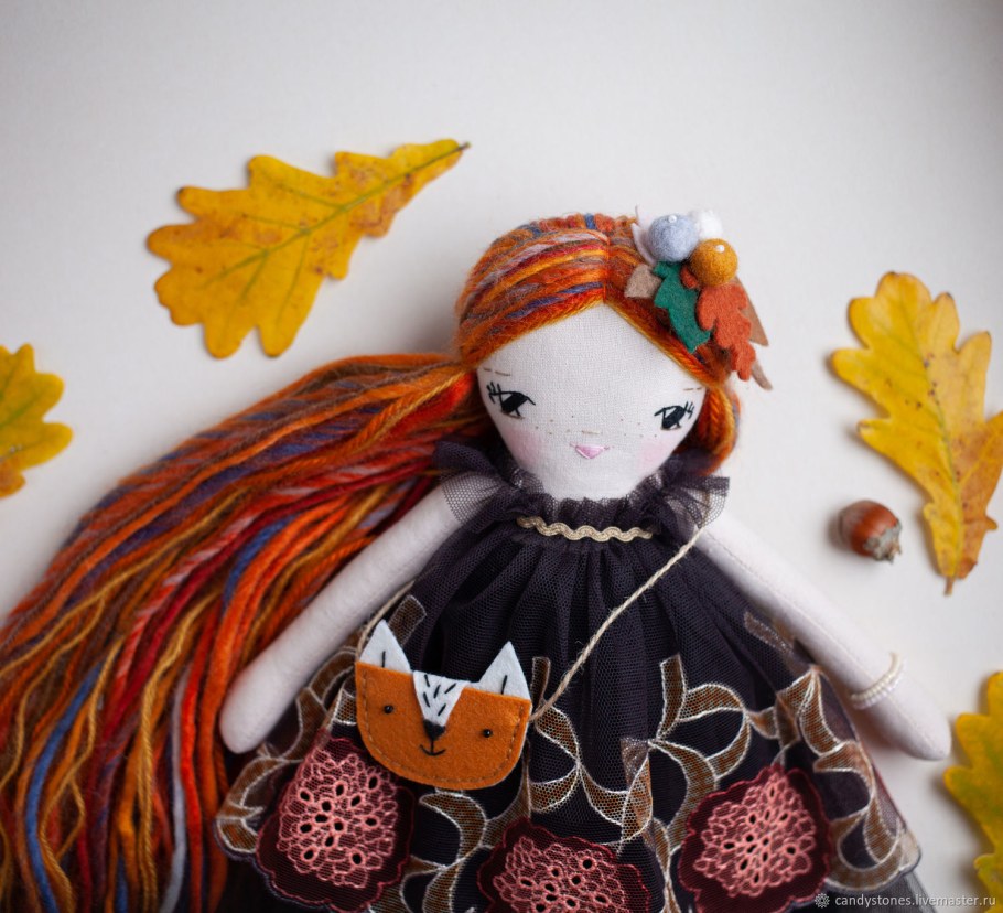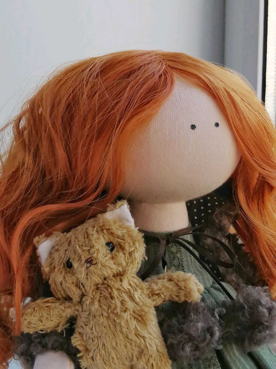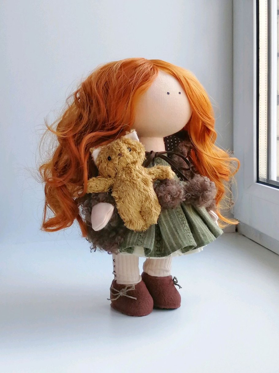 Текстильная кукла с рыжими волосами