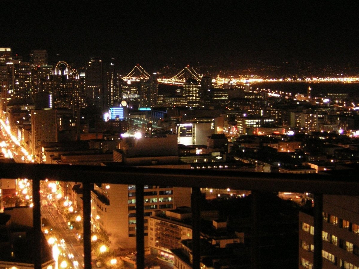 Вид с балкона на город ночью
