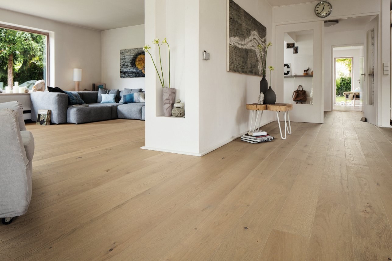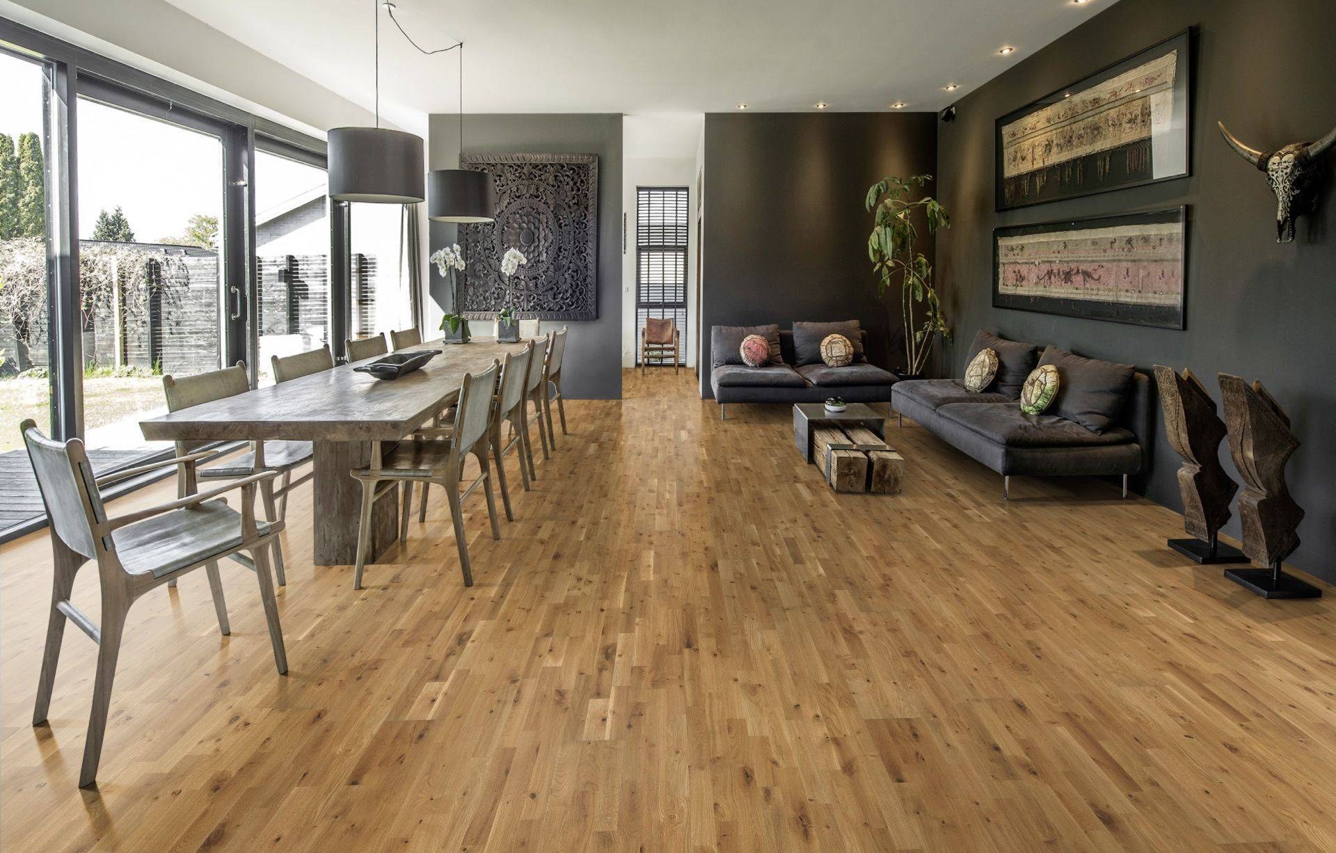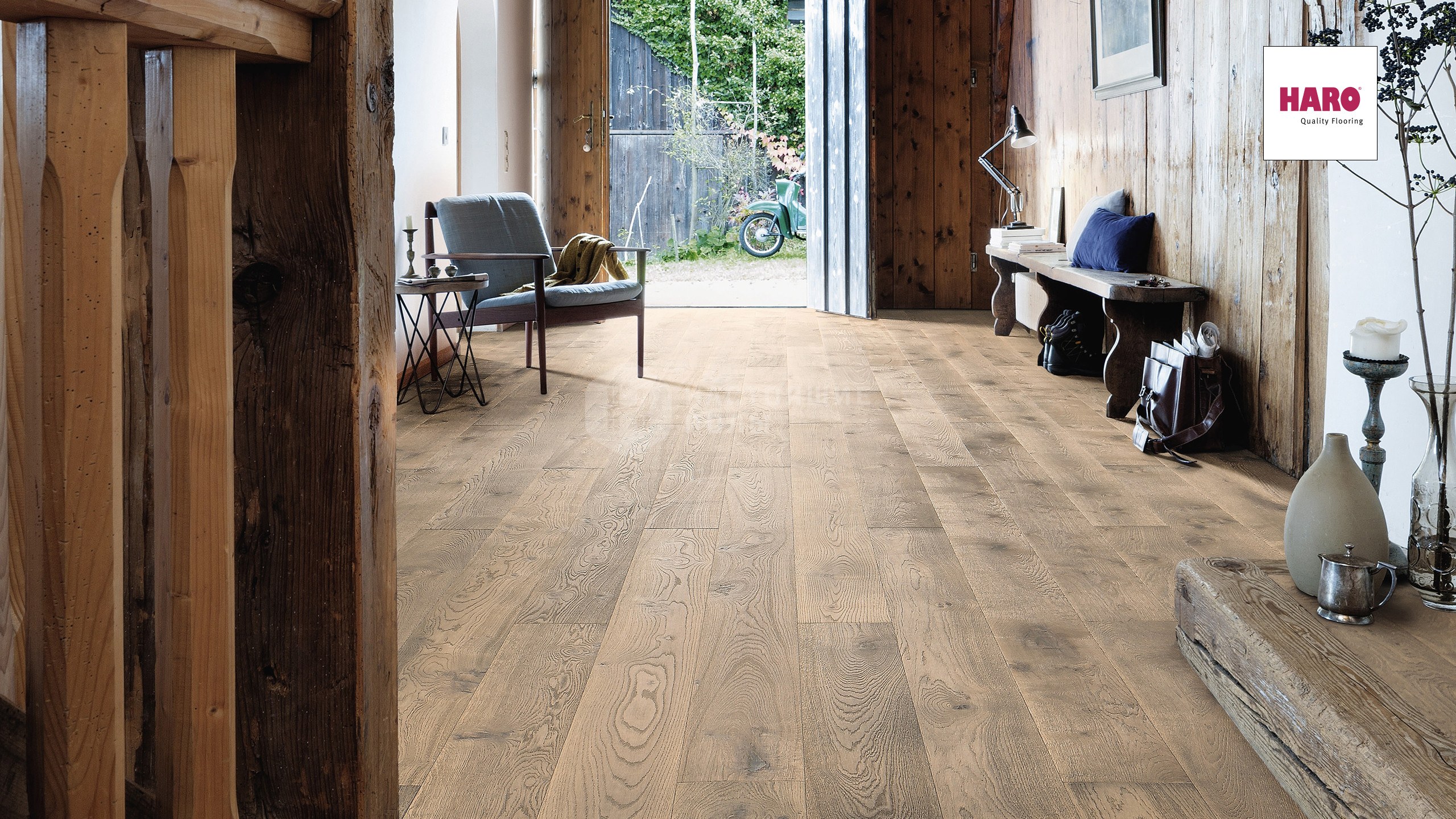 Паркетная доска Haro 4000 трёхполосная дуб Табакко-серый