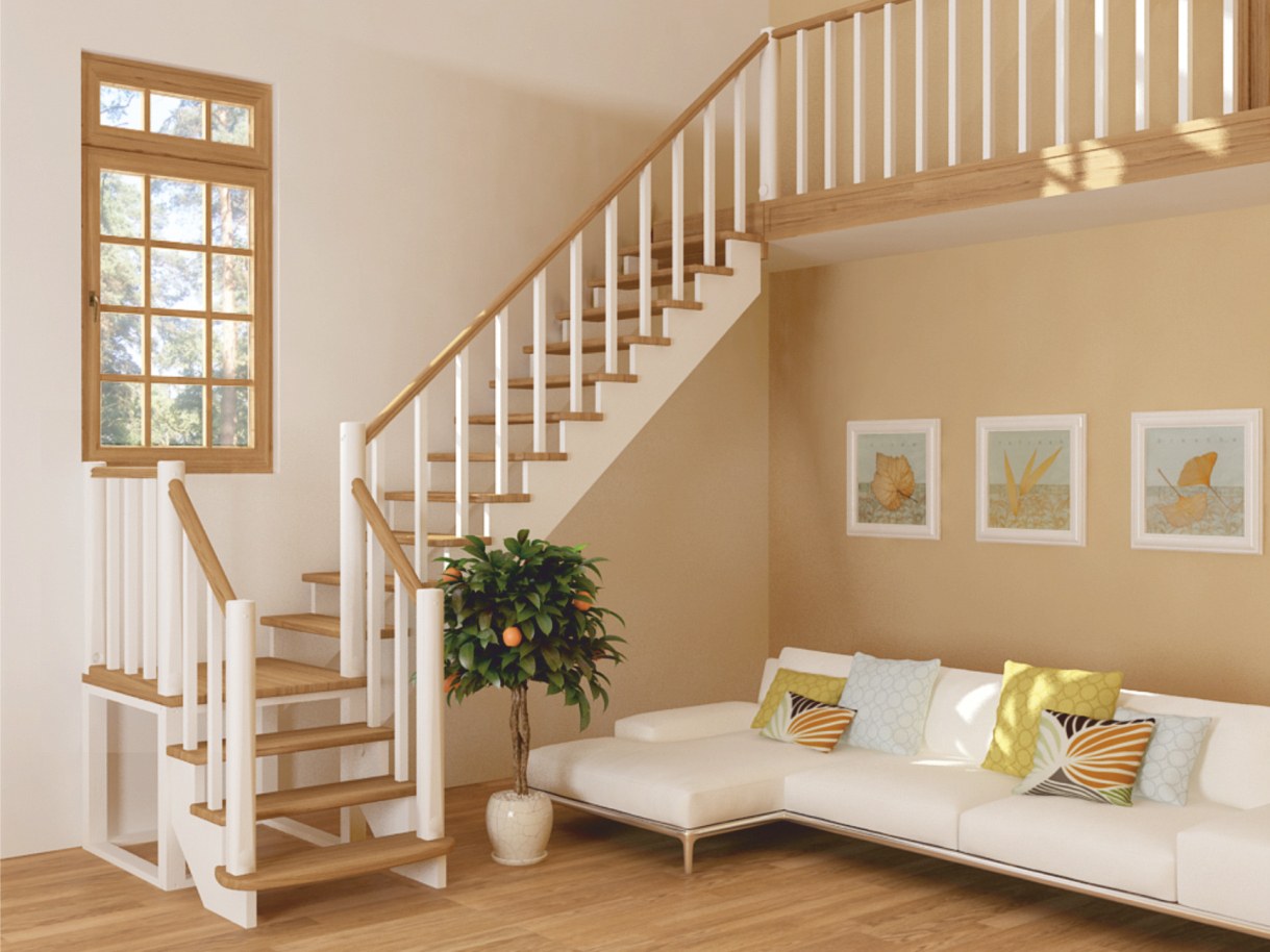 Деревянные лестницы на второй этаж двухмаршевые